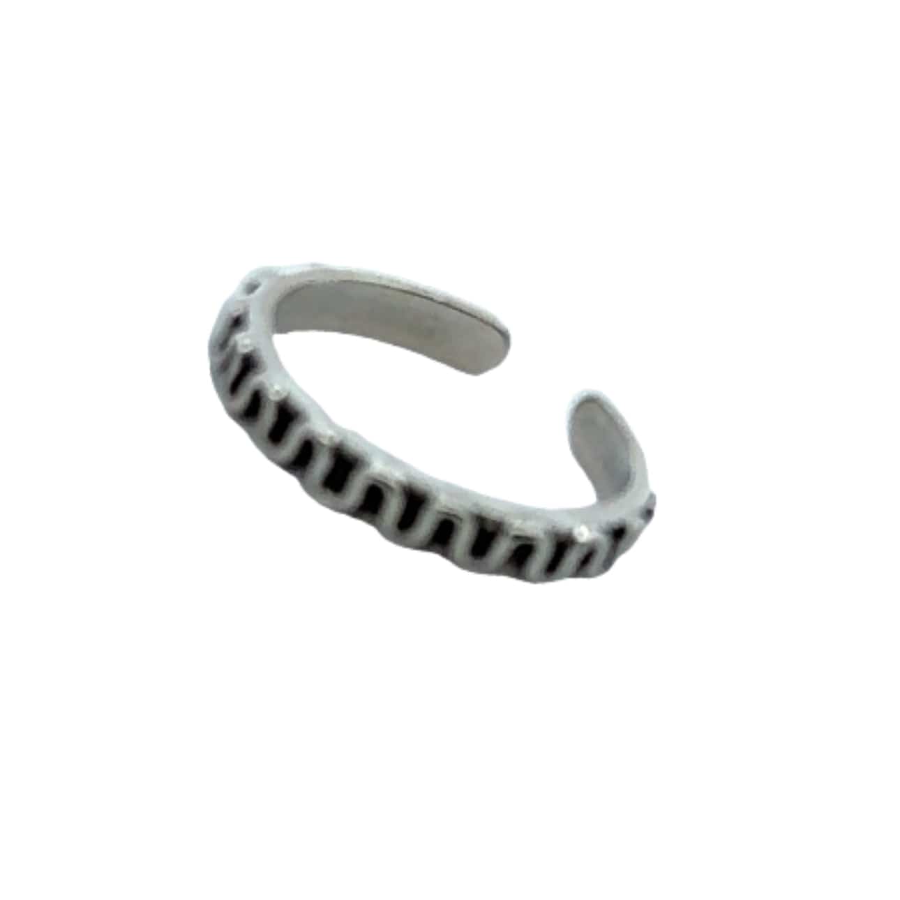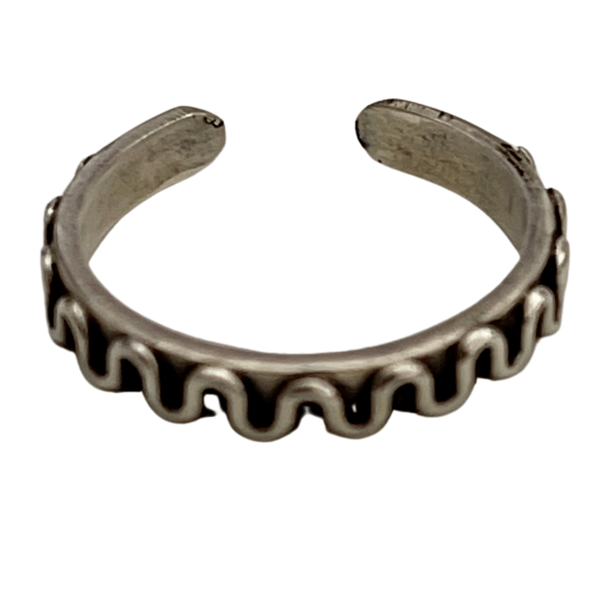Perfect for summer days, the simple design is like the waves lining up to break. Adjustable size and can be worn as a pinky or midi ring also.