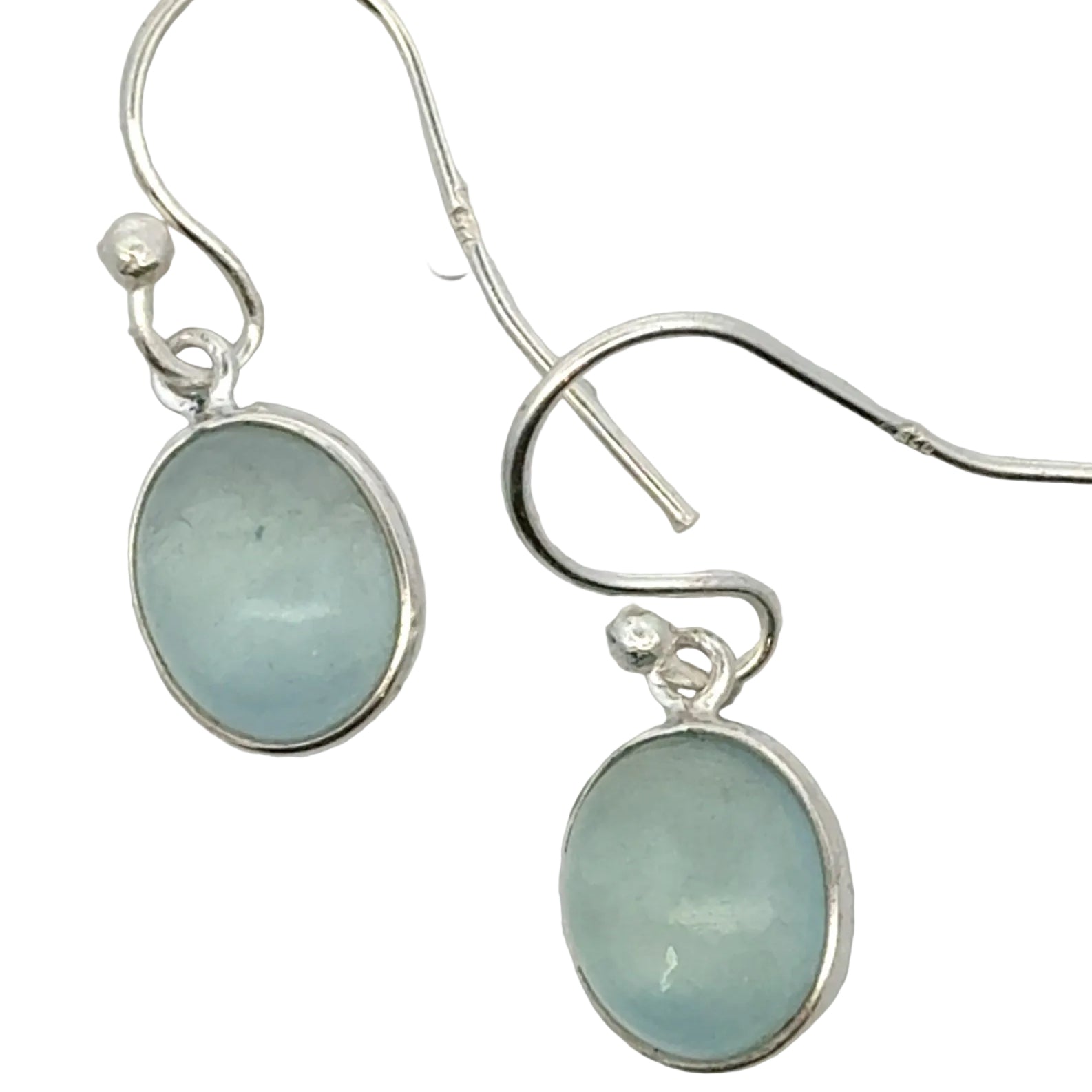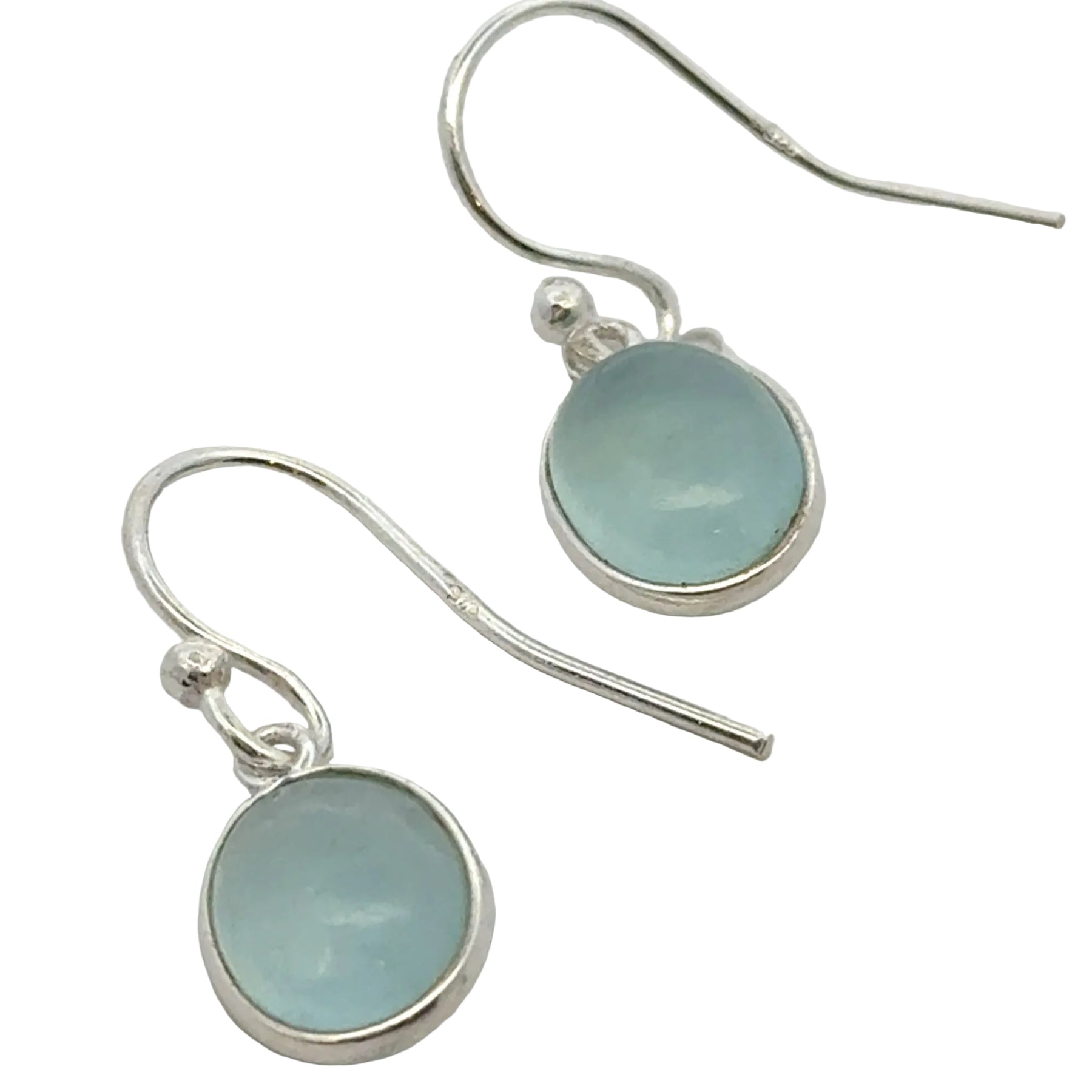 Big polished natural Aquamarine cabochon earrings bezel set in shiny Sterling Silver. The gentle calming colour is named for the sea and is a good luck charm all over the world.