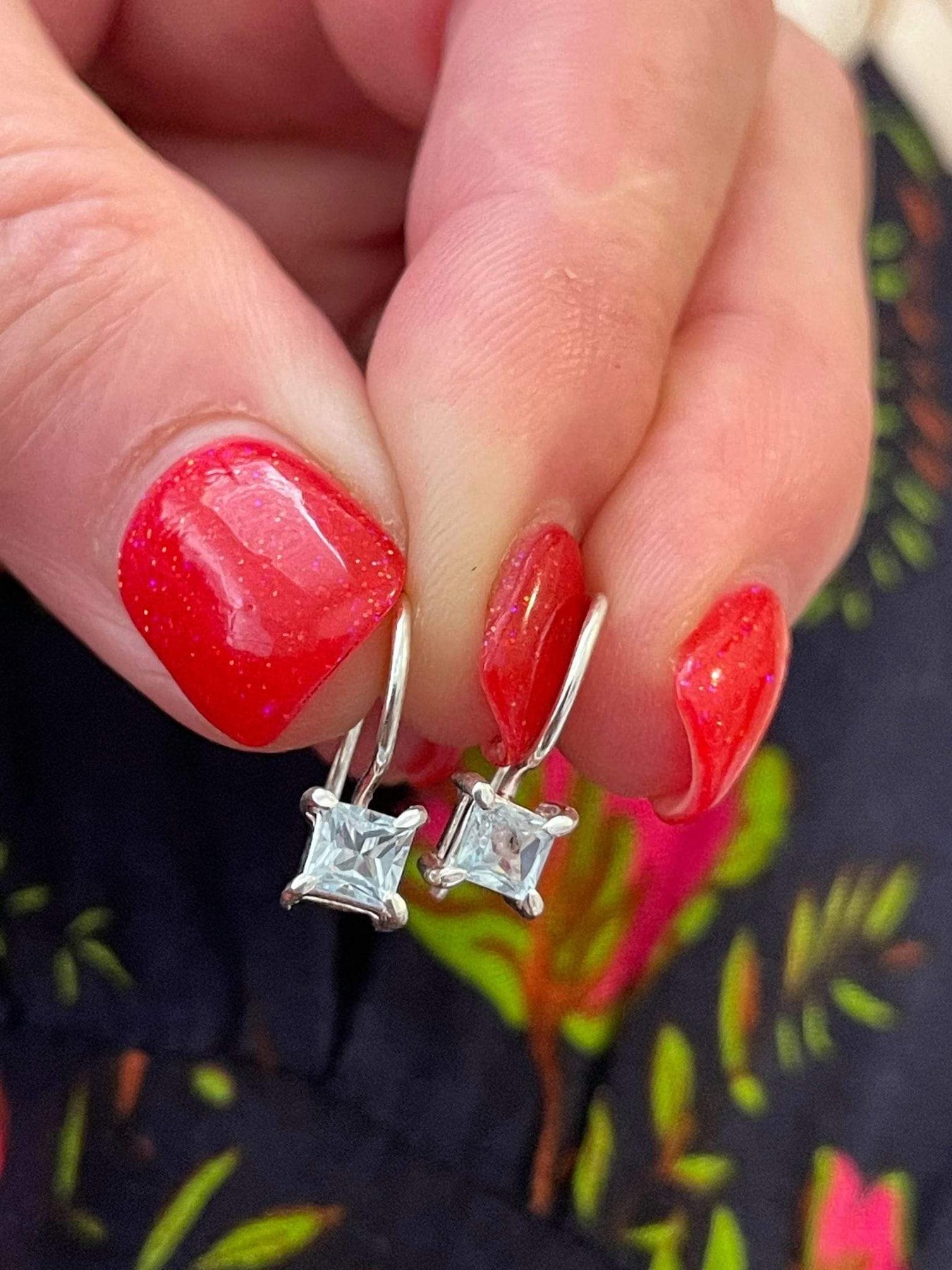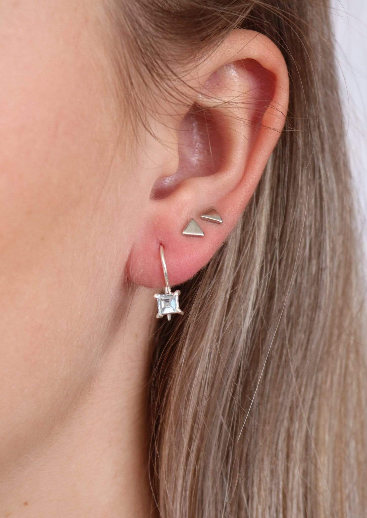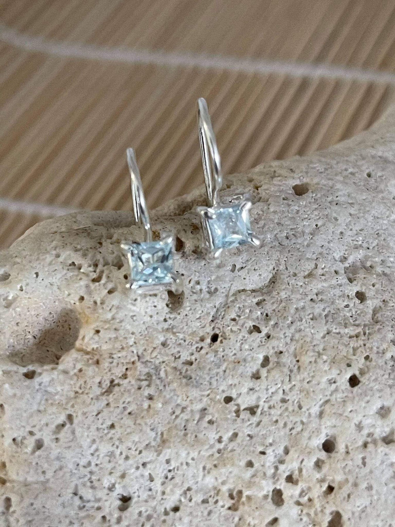 With their 4 MM square-cut blue topaz gemstone, they sit comfortably under your lobe but are designed to still catch the eye of others. Wear them casually for a boho look or dress them up for your outfit of the day/night!