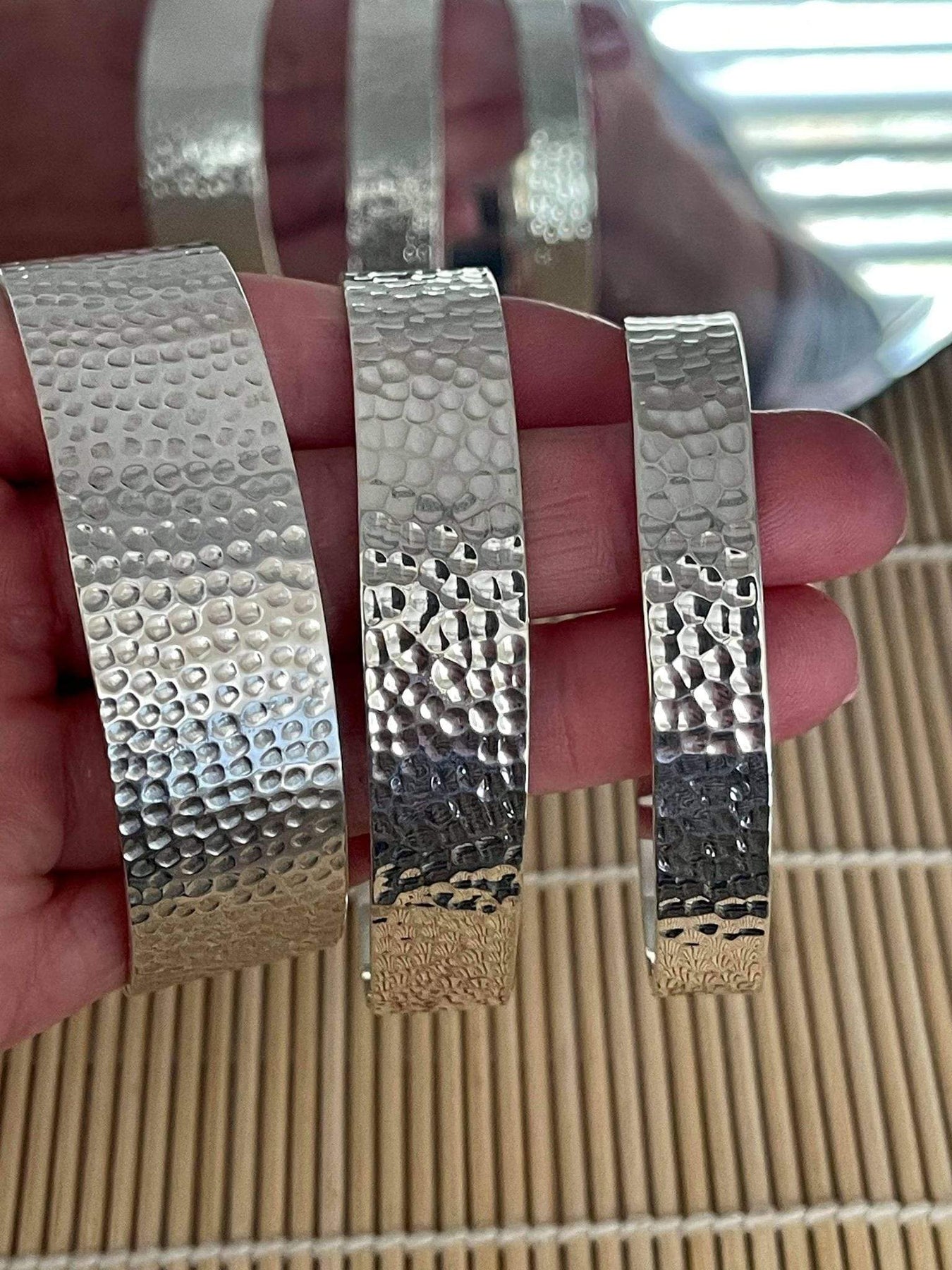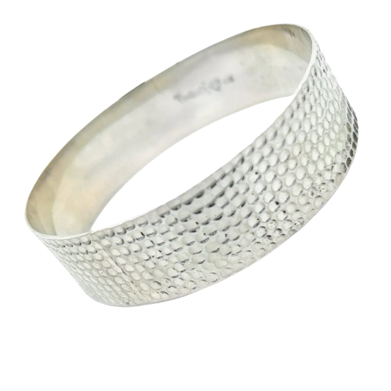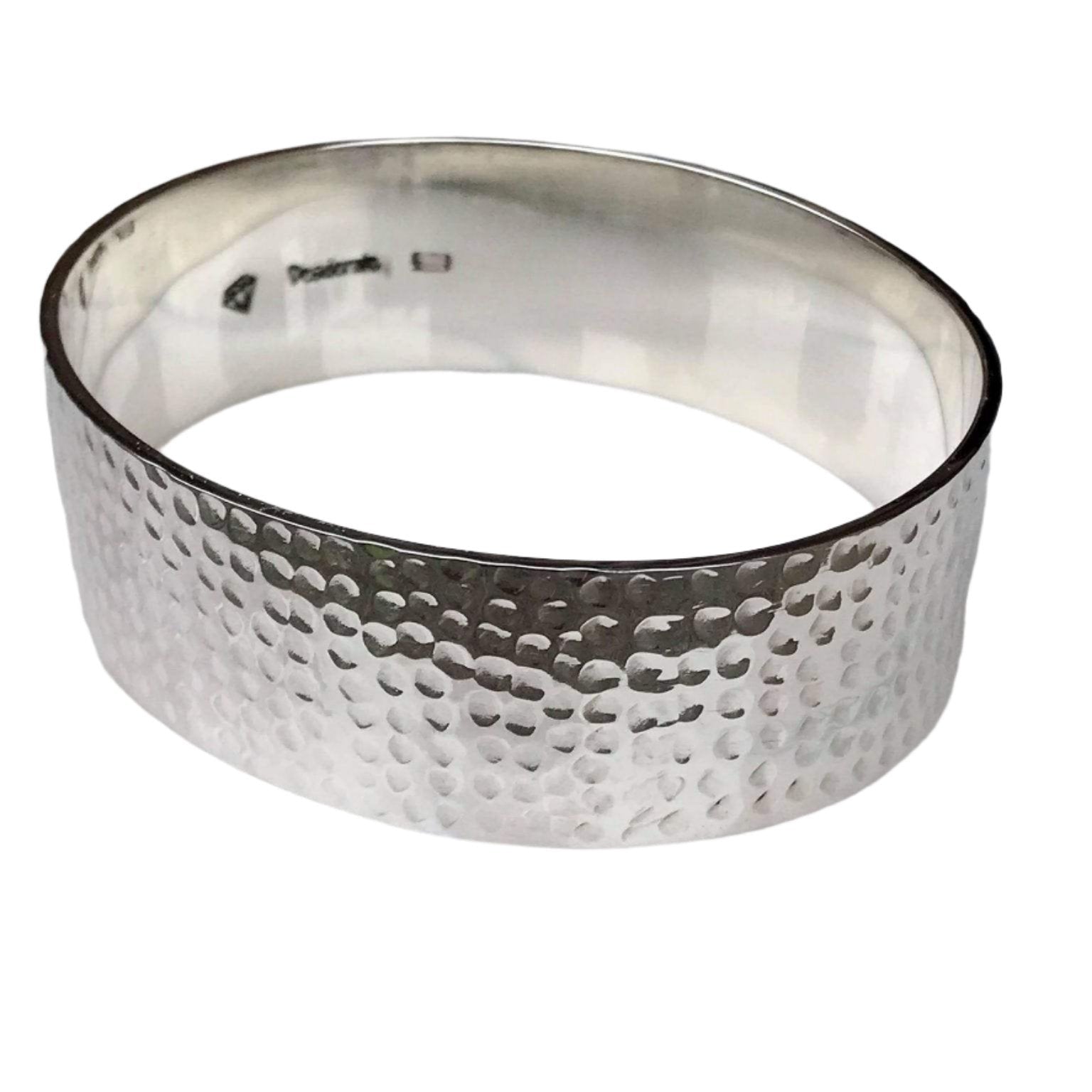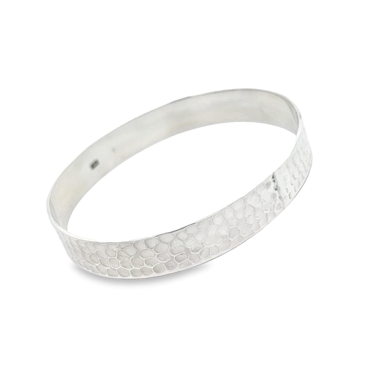 High-quality Sterling Silver has been hand-hammered to create a uniquely stunning hammered silver bangle. The hammering catches the light and sparkles like glitter.