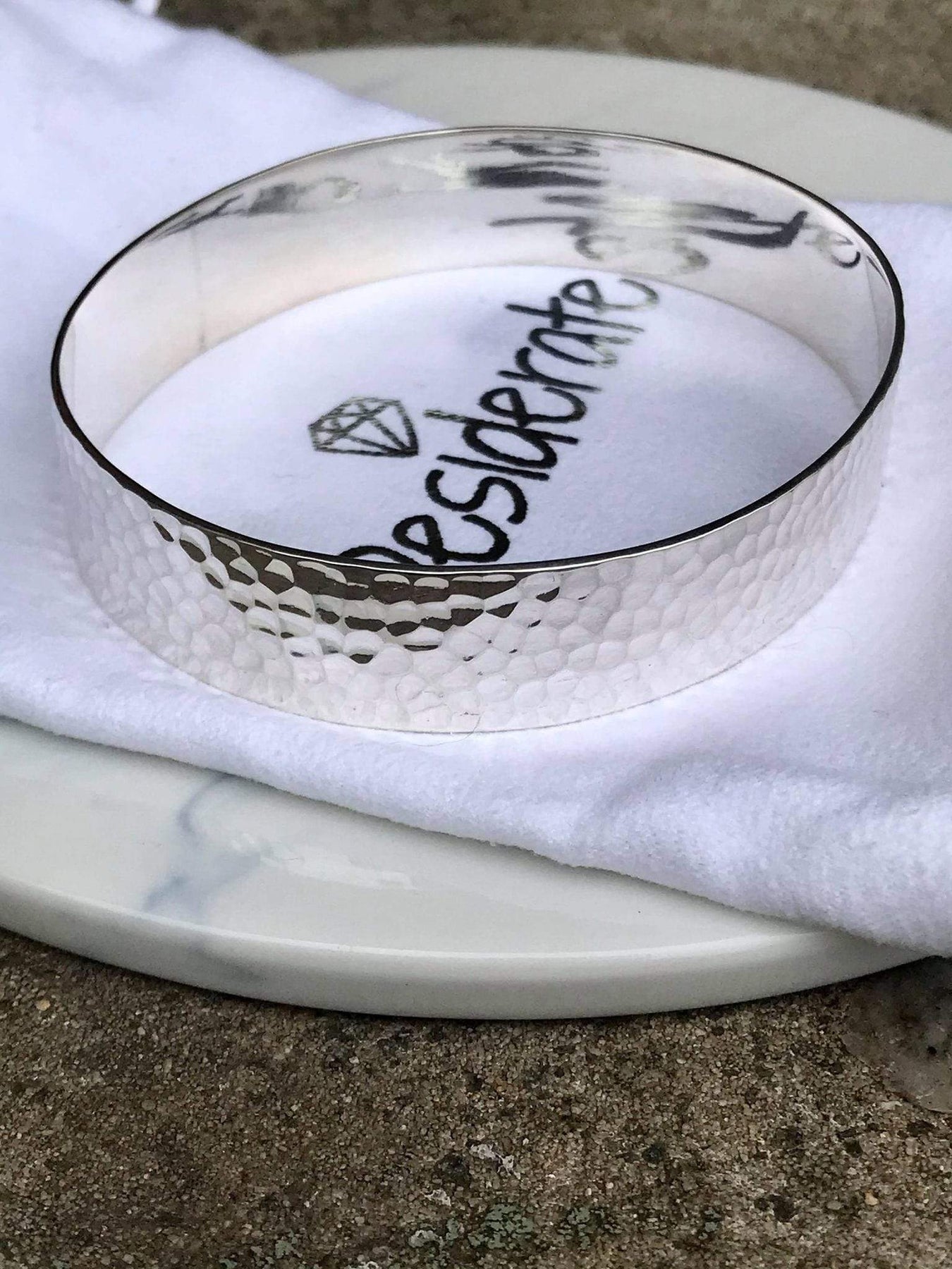 I couldn't be more thrilled with this stunning bangle. I love the dented style, it catches the light spectacularly! I've added it to my ever growing bangle stack. Thank you yet again all of the teeam at Desiderate.