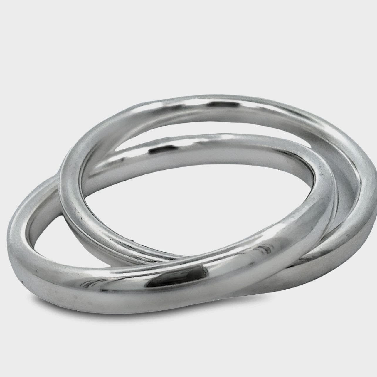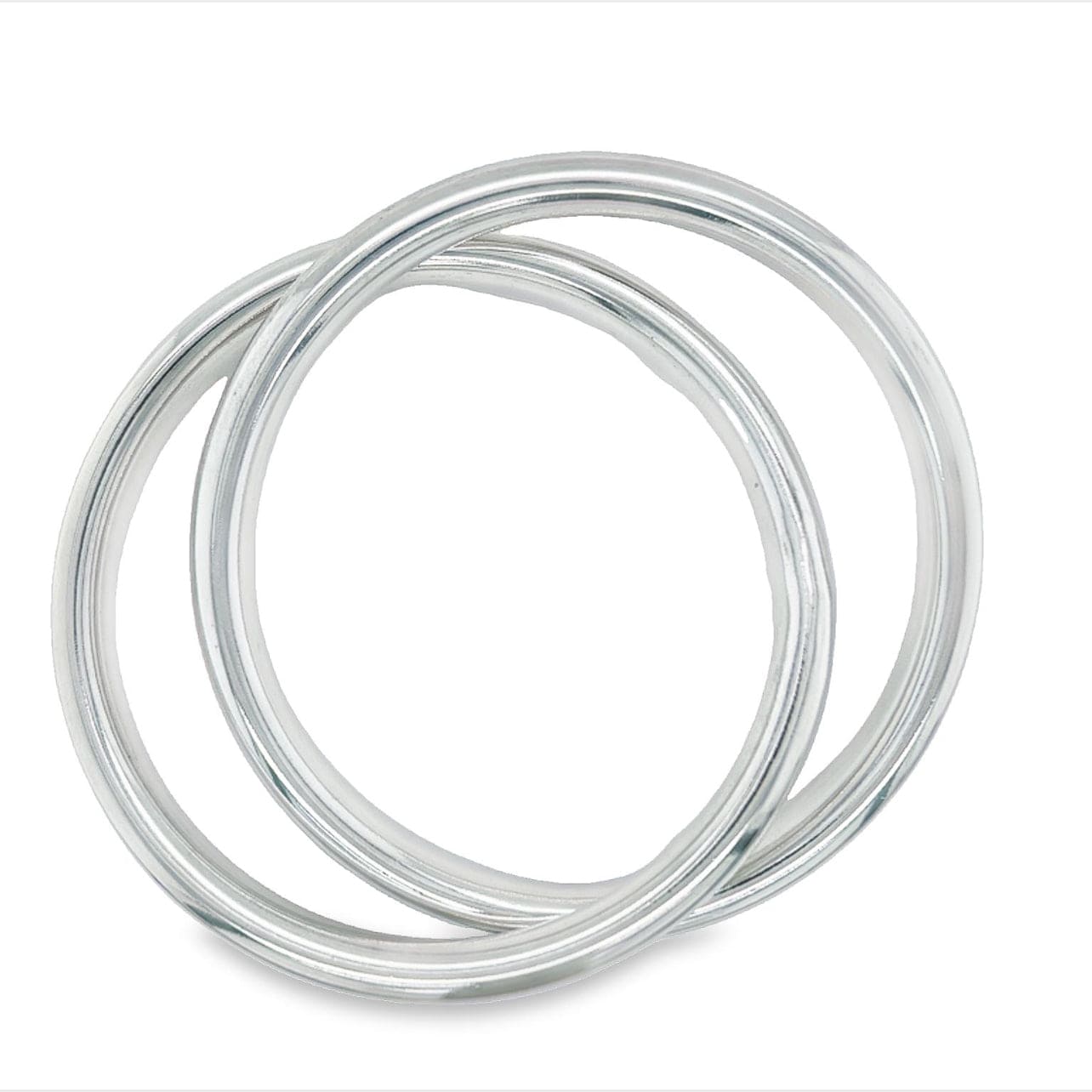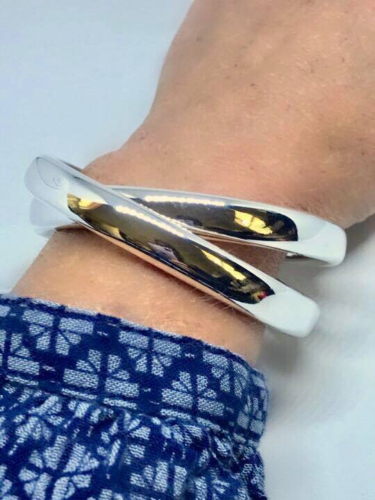Styling has never been easier than adding this double linked silver bangle set to your wrist. It's two bangles linked together, so it looks like two silver bangles, which makes it awesome for a start of a bangle stack.
