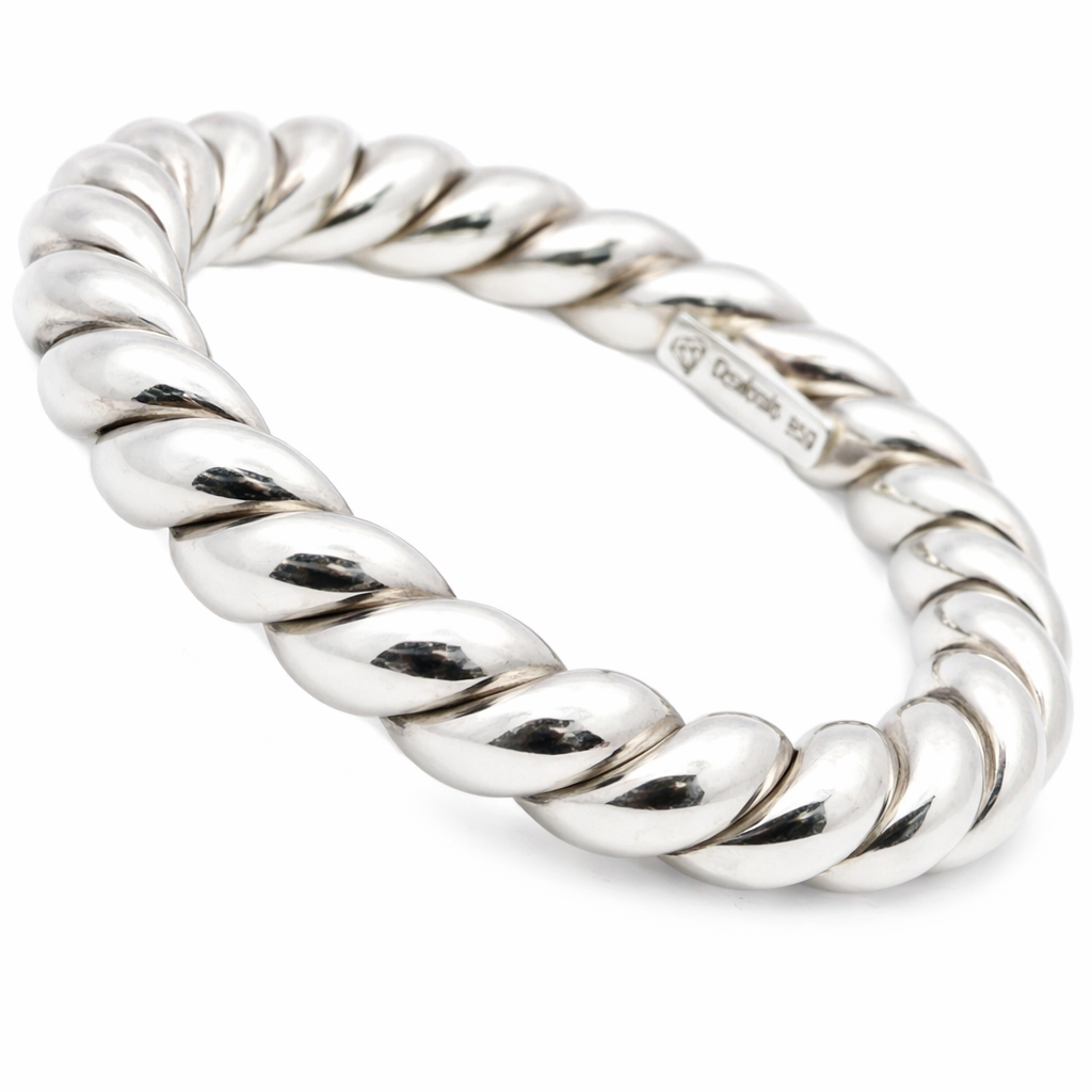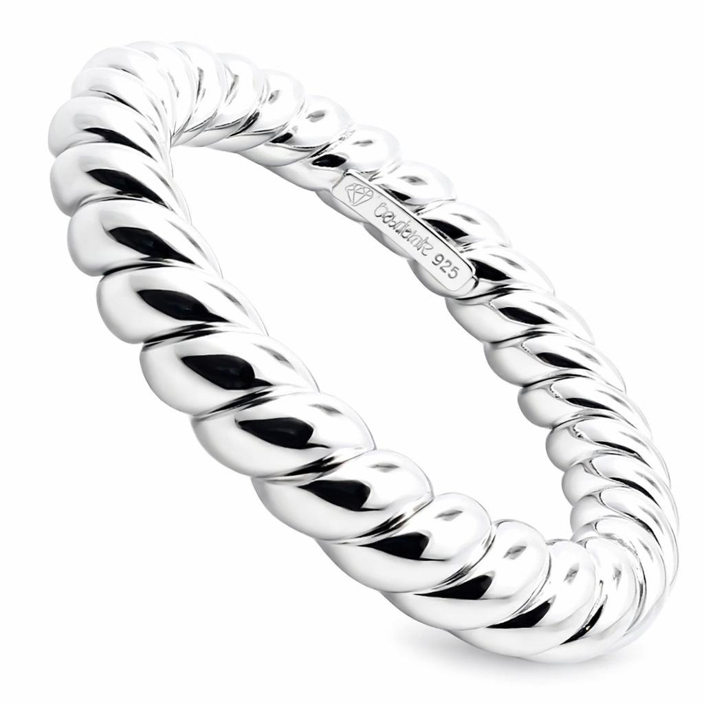 This silver bangle is simply gorgeous. The design is timeless, and the shine is breathtaking. I've worn it every day since it arrived, and it still looks as stunning as the day I got it. It's perfect. I highly recommend treating yourself to this beautiful piece!