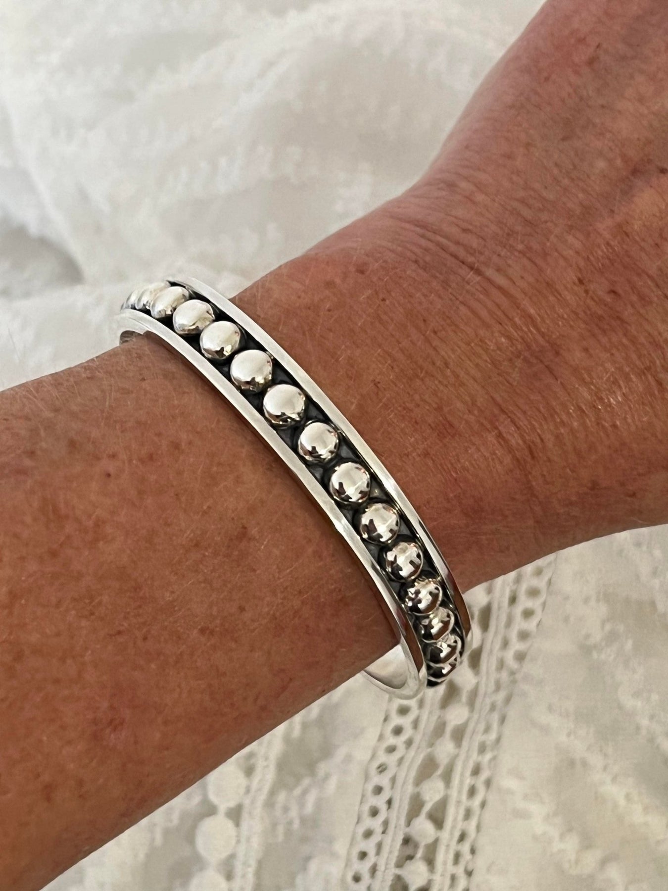 This bangle is so beautiful. It's look so unique and ethnic. I bought the 60mm which was a perfect fit for my wrist after making the mistake of buying a different desiderat bangle in 55mm