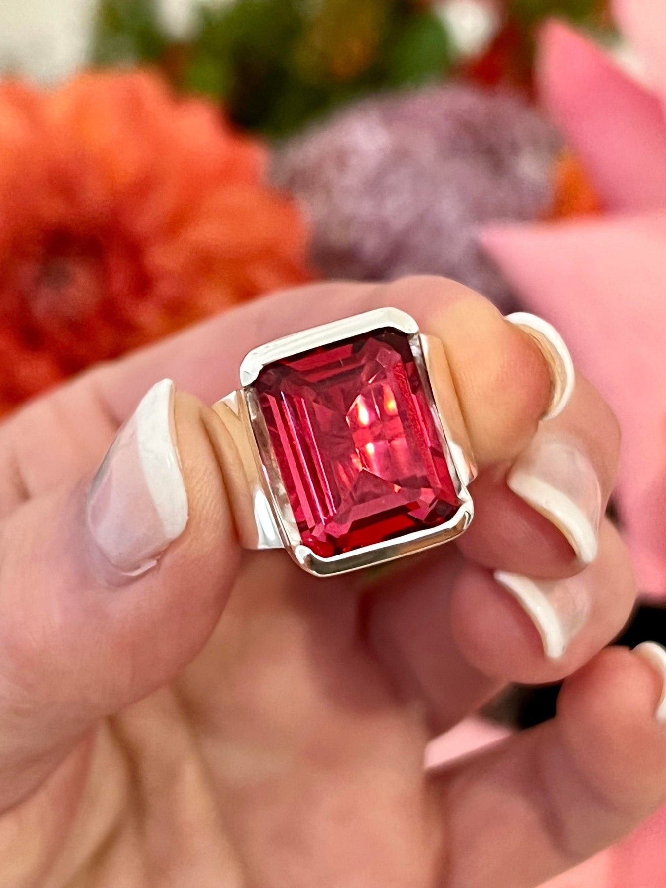 *Note - this is a natural gem that has been heat-treated to achieve the pinky-red ruby colour and eliminate variations in the stone. Rubies are part of the Corundum family.