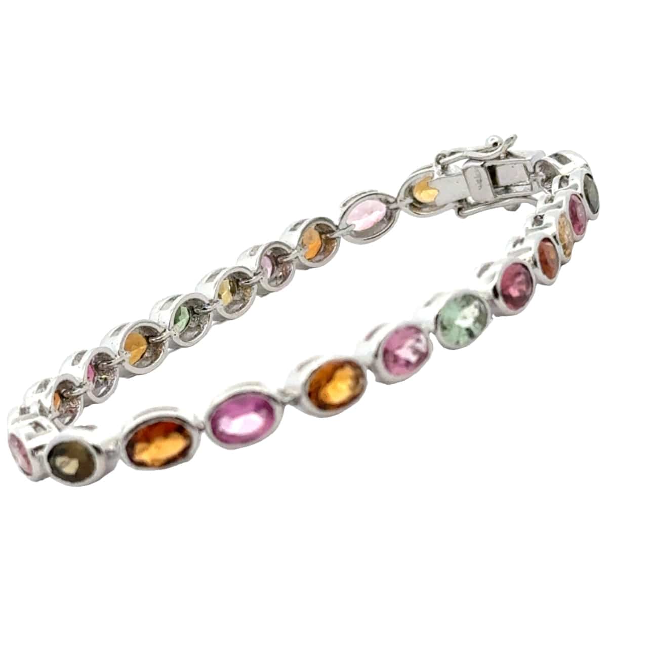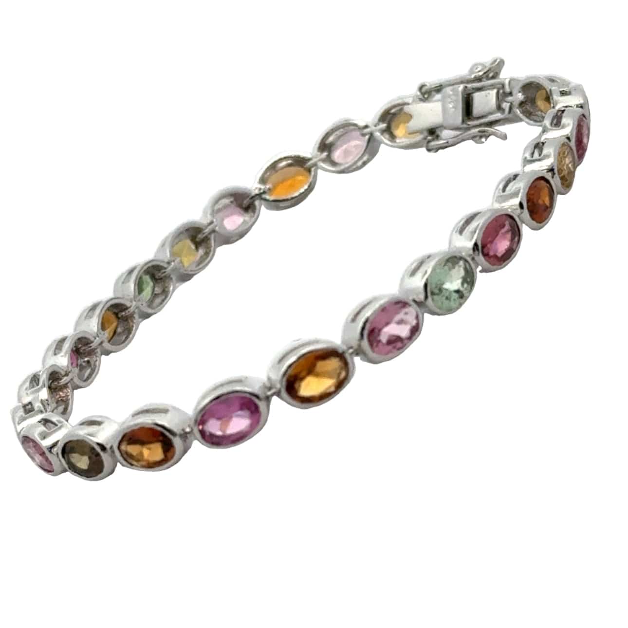 All the colours of the rainbow combine in this brilliant bracelet featuring 23 stunning gemstones. The sparkle on your wrist will catch your eye and we hope you stop to admire it every time. Perhaps it can be a symbol of your triumphs, your loved ones, your anniversaries or perhaps you just love pretty trinkets—no matter why you wear it, you are sure to enjoy every sparkle and shimmer.