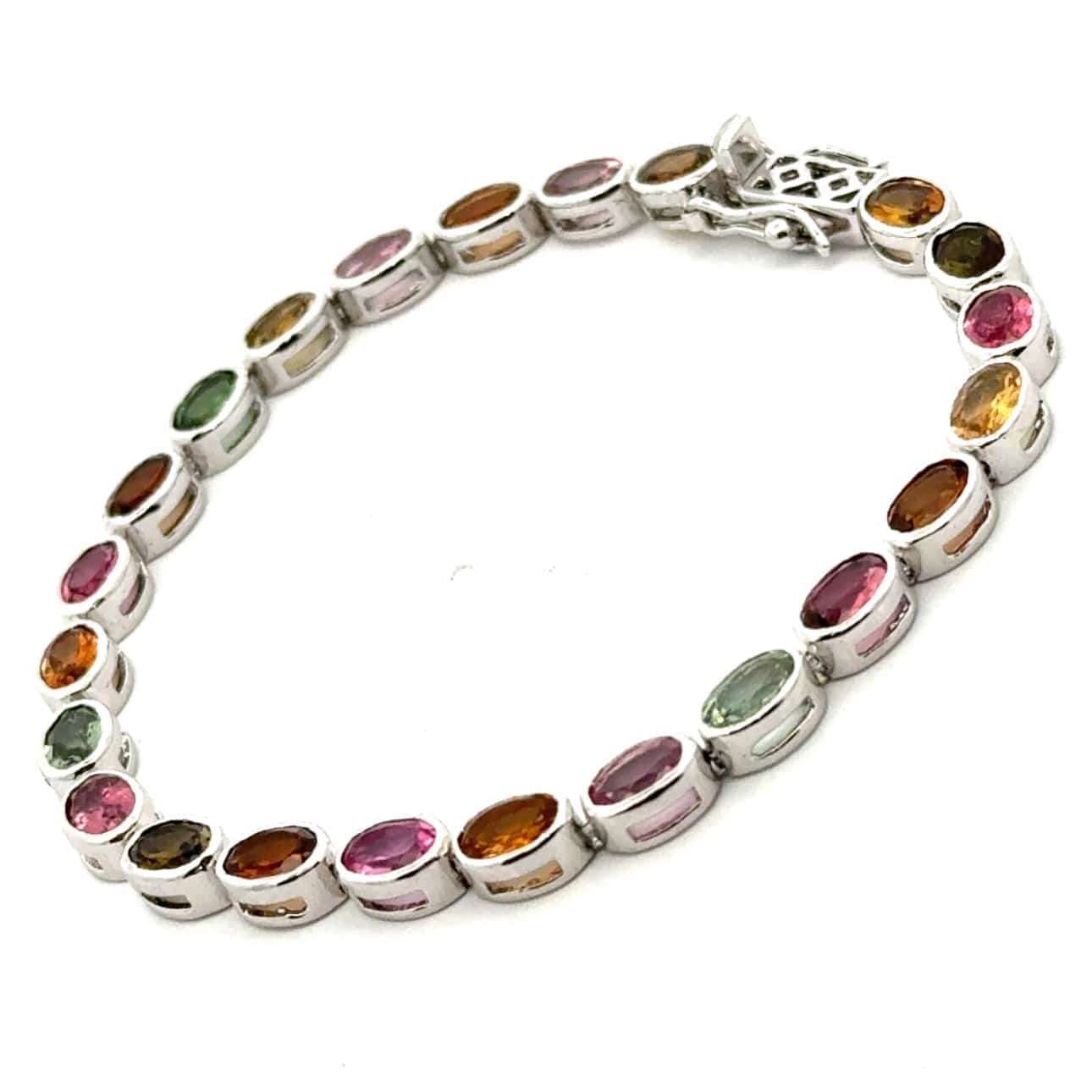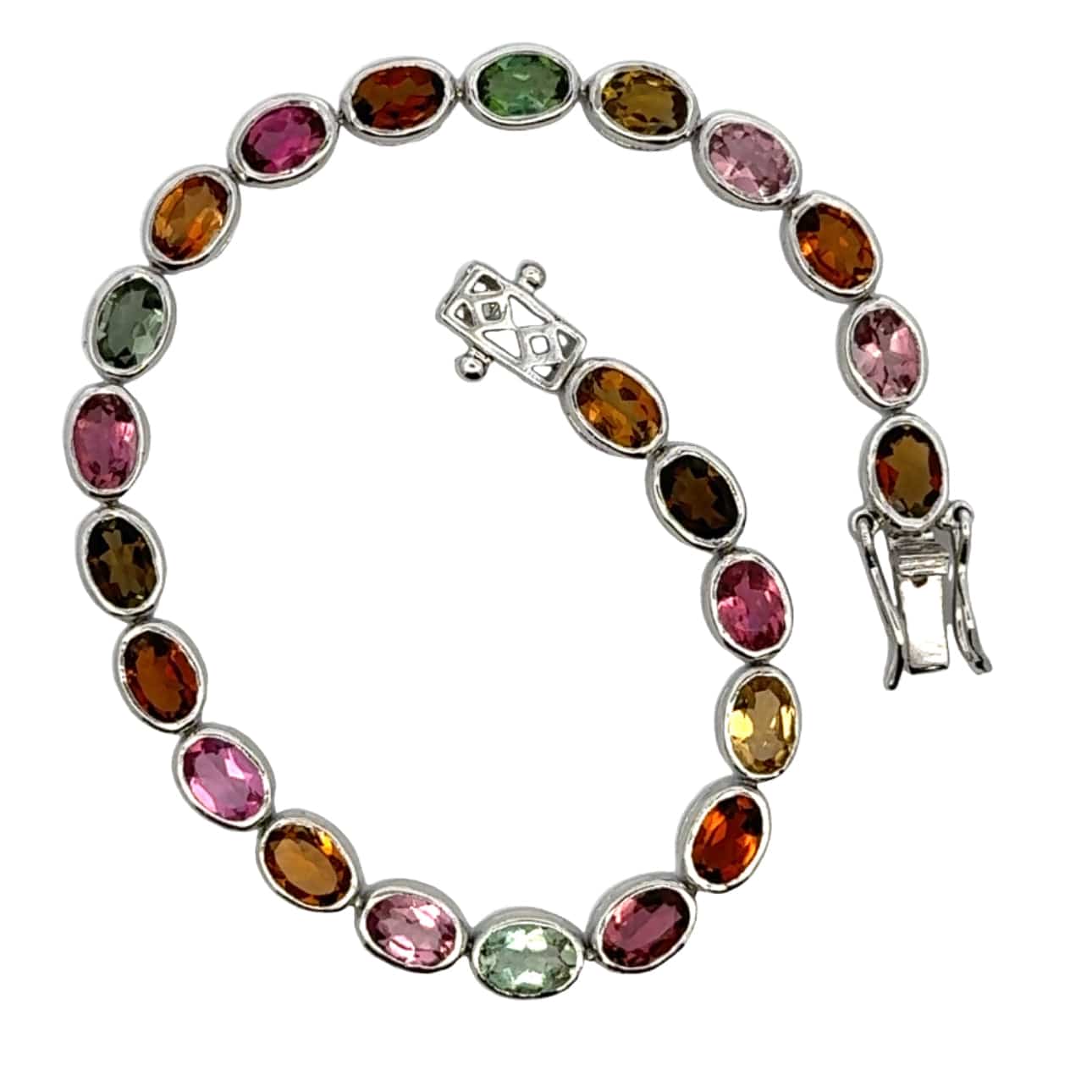 Each oval-cut stone is encased in a safe, secure and stunning bezel setting that allows the bracelet to move fluidly with your wrist. The bezel setting also allows each stone to catch the light. The delicate stones are contrasted beautifully with the gleam of sterling silver to create a mesmerising impact. This is a show-stopping gemstone tennis bracelet.