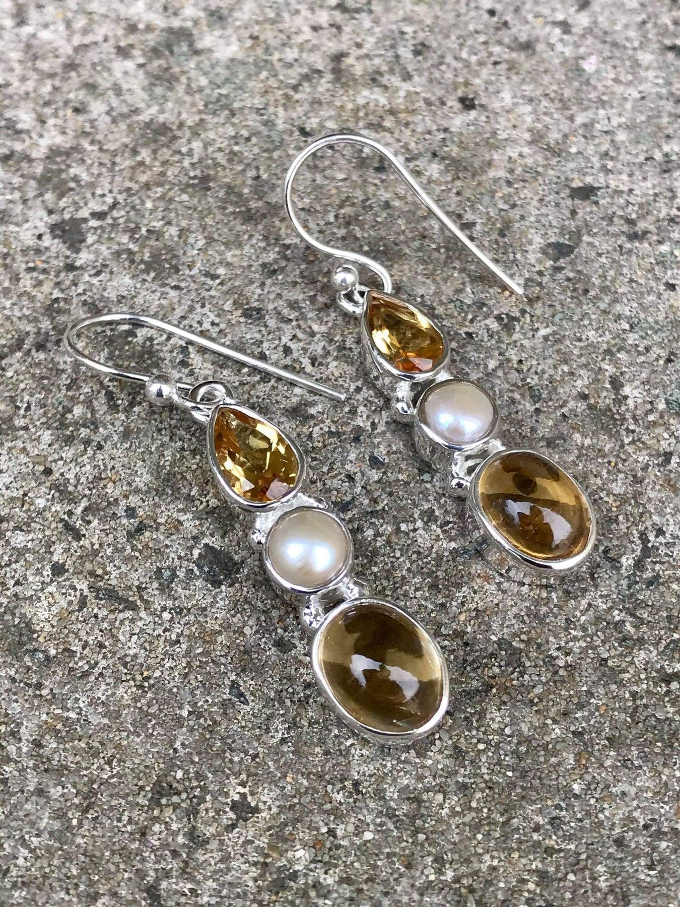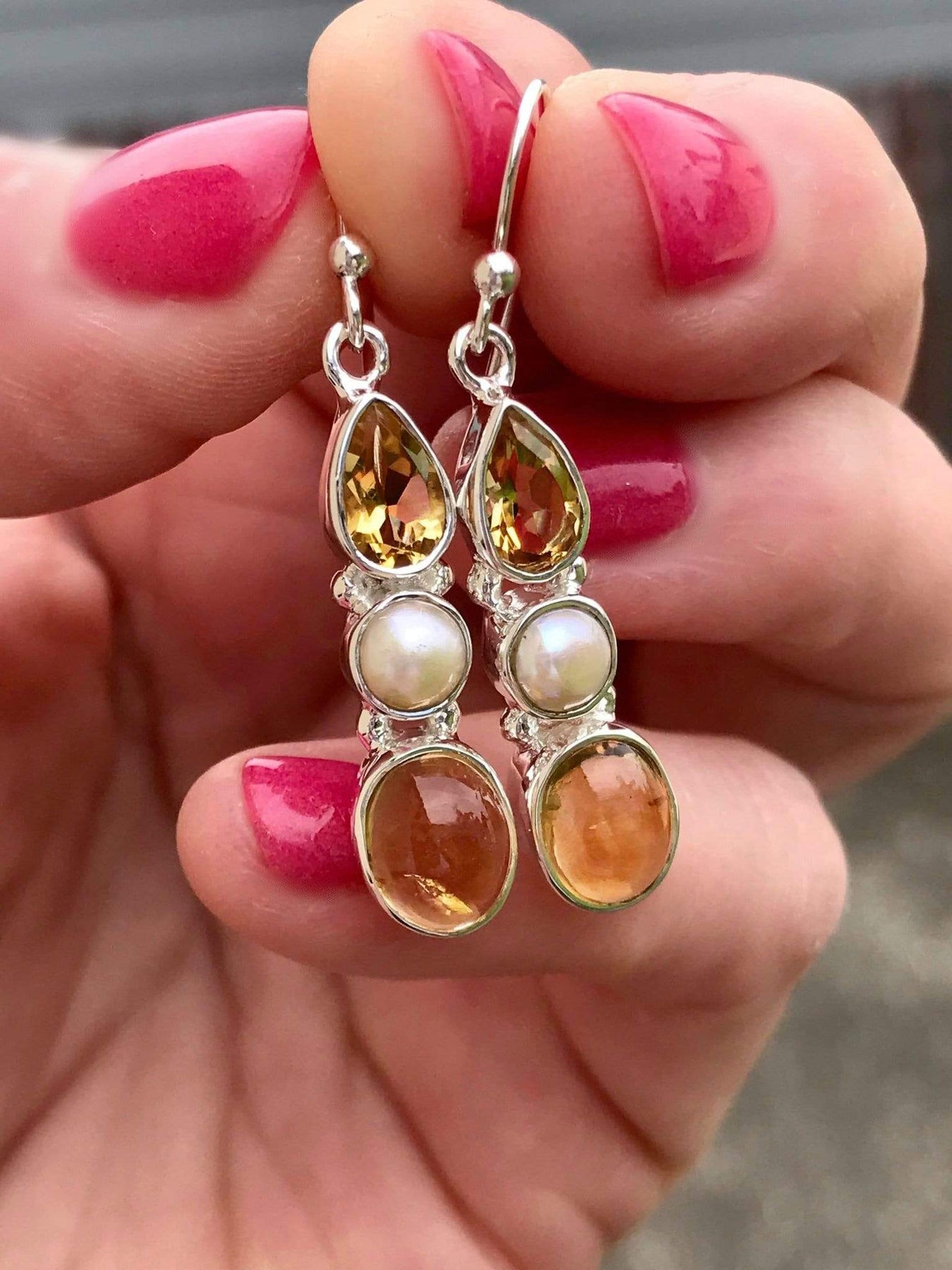 Beautiful, the sparkly citrine, the pearl and the smooth citrine look fab together, love these, so easy to wear, I highly recommend.