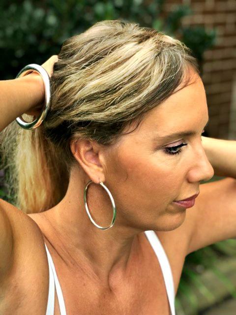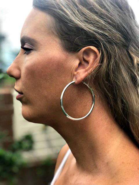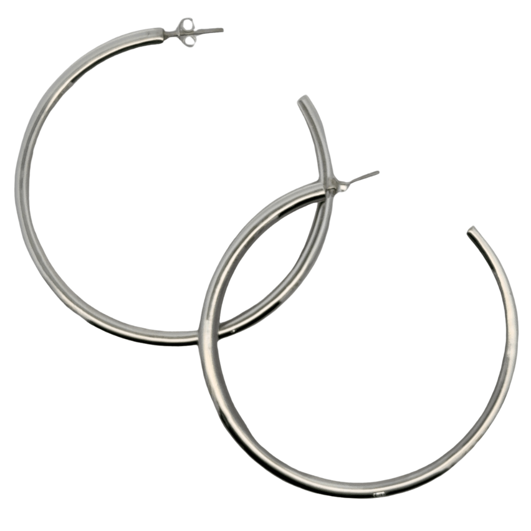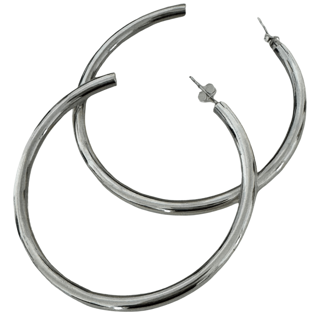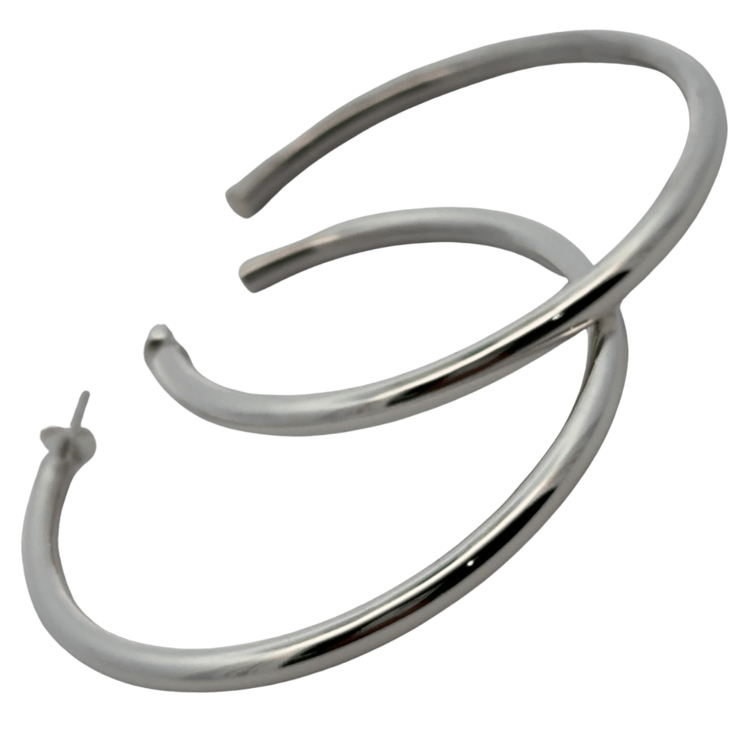 These hoops are all about making a statement without weighing you down. Crafted with care, these substantial 60 MM diameter wonders are big enough to turn heads but perfectly balanced for your comfort. With a 4MM width, they exude an undeniable silver presence that gleams without overwhelming.