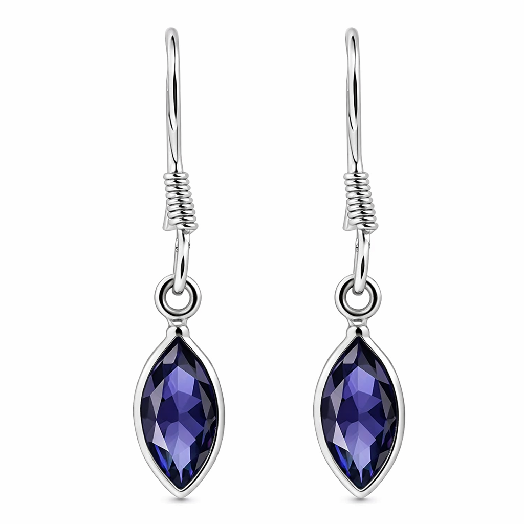 CLICK HERE TO SEND SOMEONE A HINT YOU'D LOVE THEM TO PURCHASE THIS FOR YOUSterling silver diamond drop earrings set with 10 x 5 mm marquise-cut natural iolite gemstones displaying rich blue-violet tones.