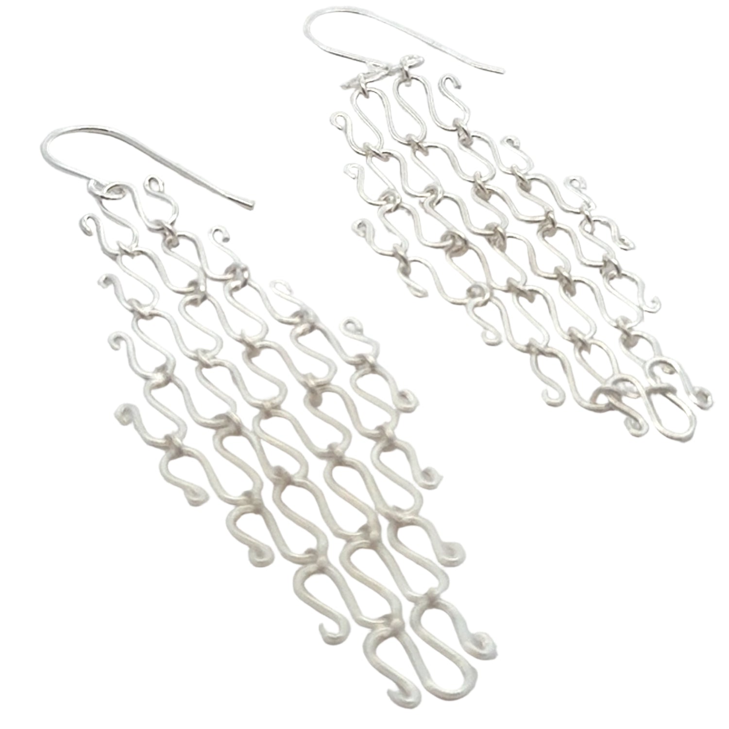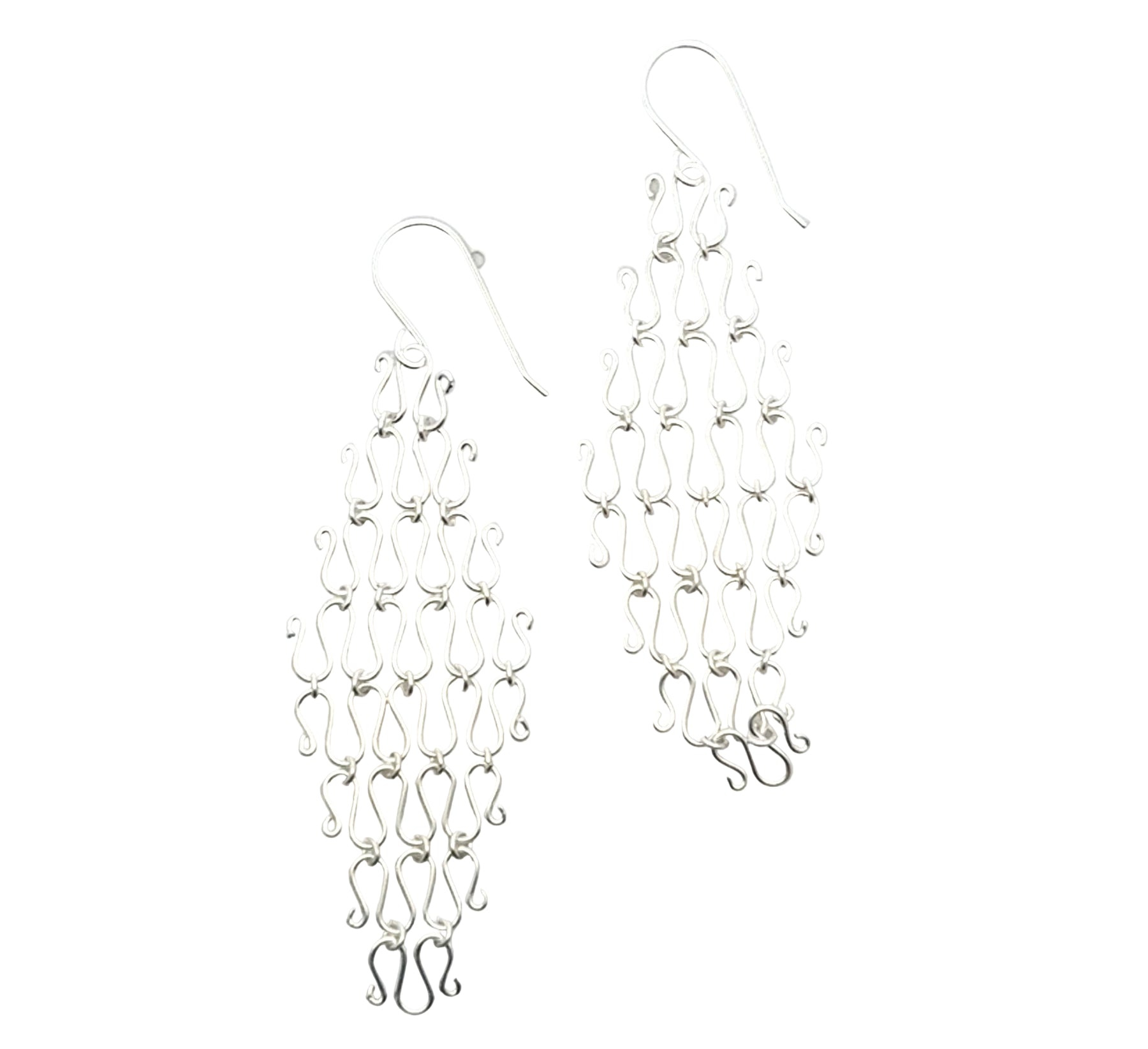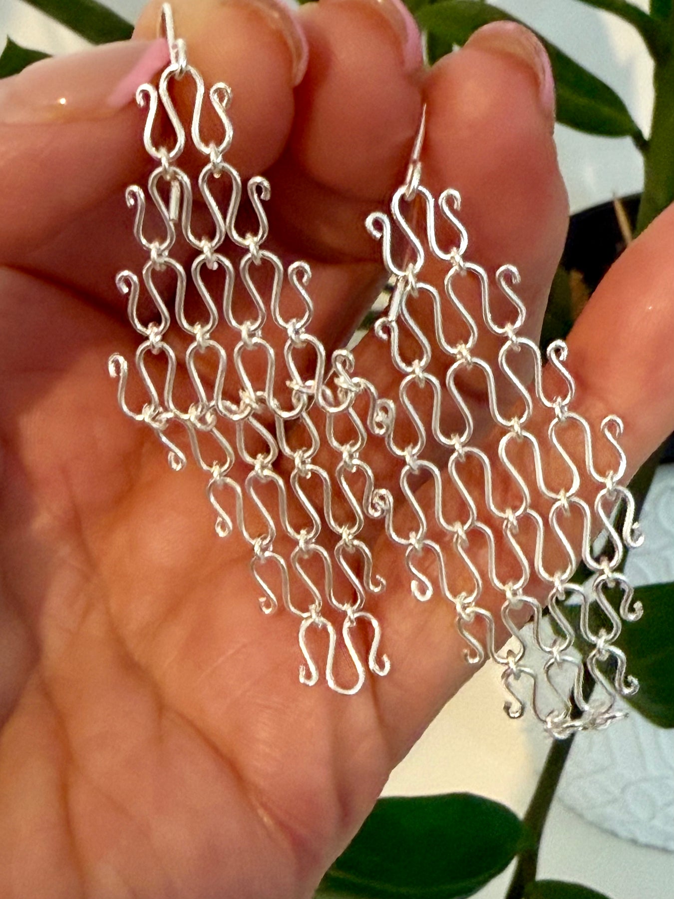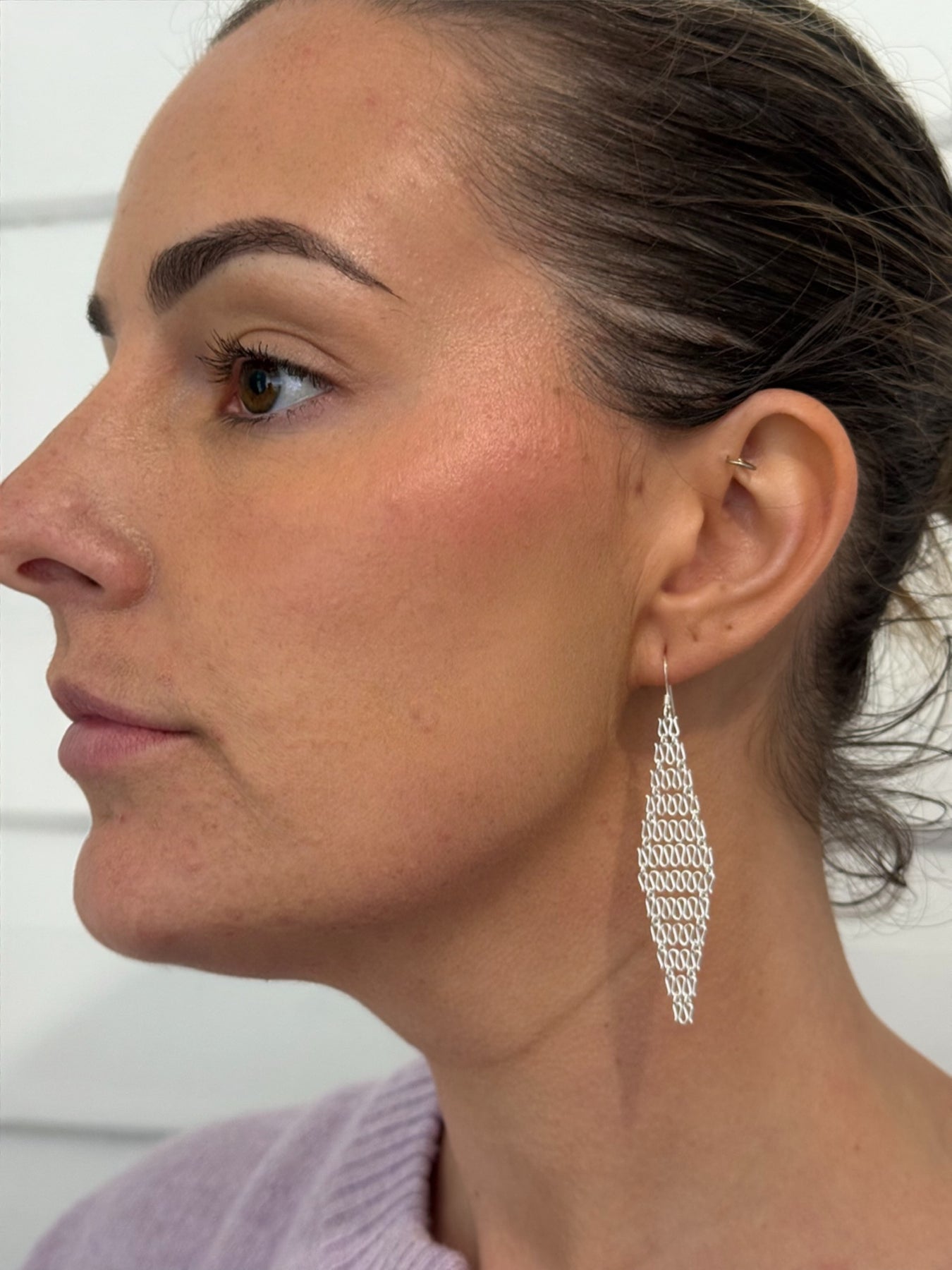 Handcrafted in sterling silver, their intricate mesh design catches and reflects the light, giving a soft shimmer that feels both elegant and bold. They move beautifully as you do - fluid, feminine, and a little bit fierce.