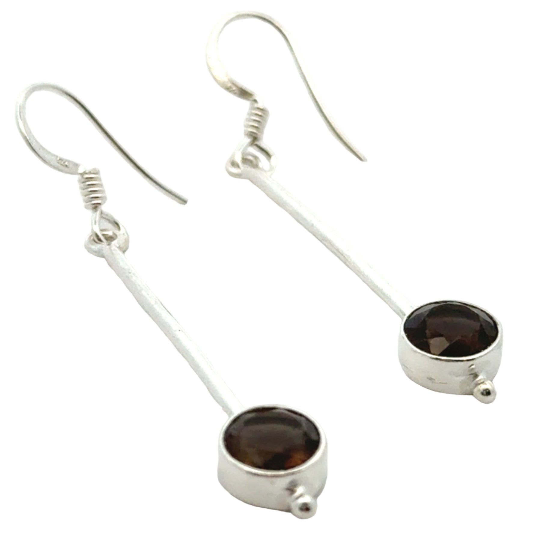 Each earring features a smooth sterling silver drop that catches the light just right, flowing into a 7mm round, facet-cut Smoky Quartz gemstone - deep, earthy and endlessly soothing.