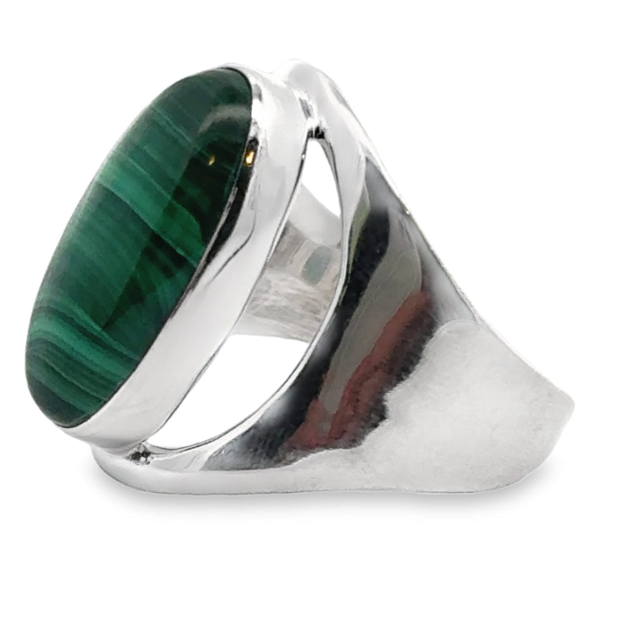 This exquisite piece will make you feel connected to the earth's natural beauty, as the deep green hues and delicate swirls of paler tones in the Malachite stone mimic the patterns found in nature. It's a ring that captures the essence of the outdoors