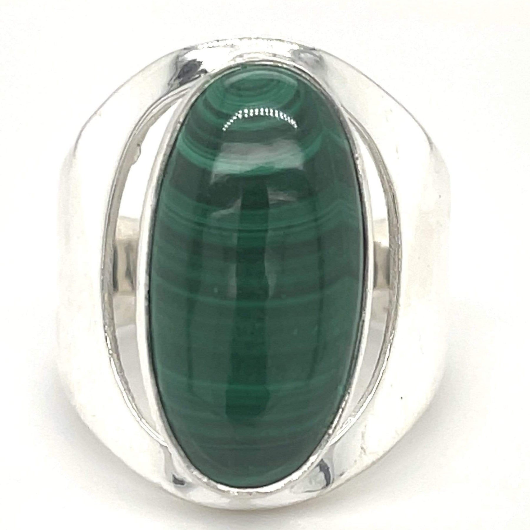 Crafted with precision, the large Malachite gem takes centre stage, elegantly encased in gleaming sterling silver. The combination of rich green and shining silver creates a mesmerising contrast that's sure to turn heads.