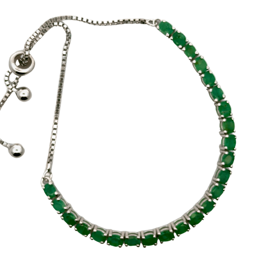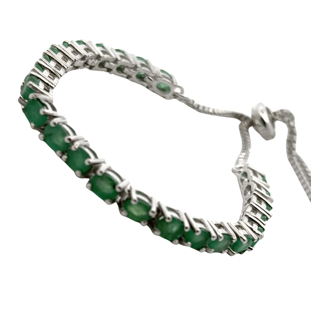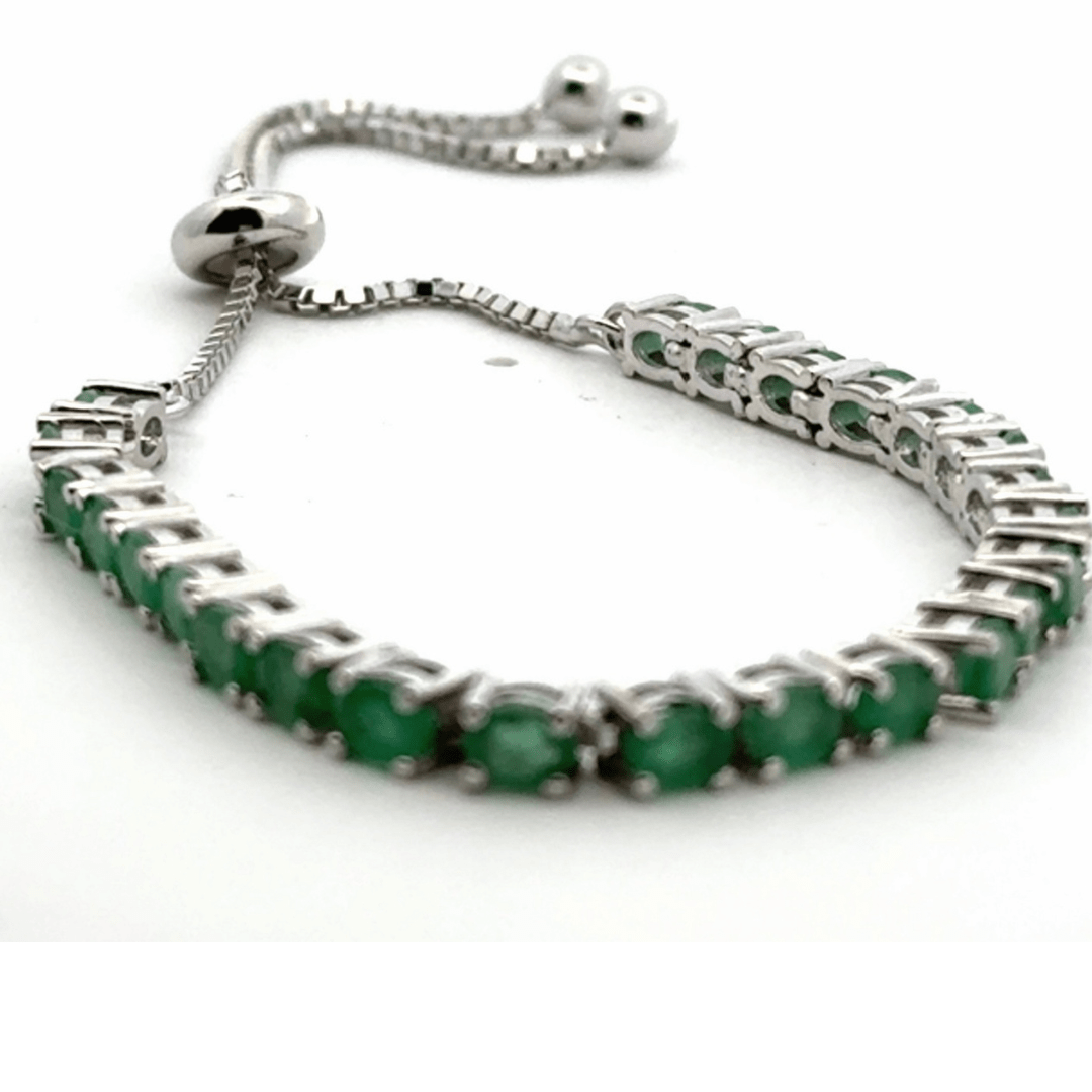 This exquisite Emerald Tennis Bracelet features 24 vibrant 4MM emeralds, each meticulously claw-set to showcase their rich green hues and exceptional brilliance.