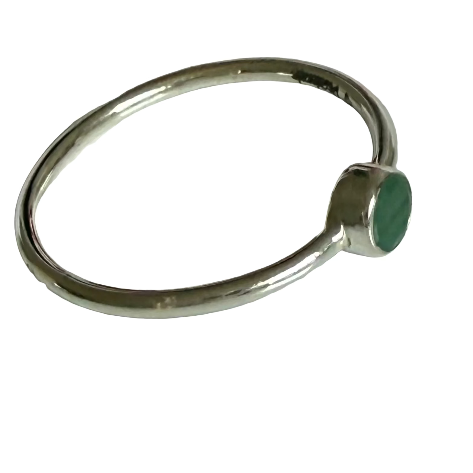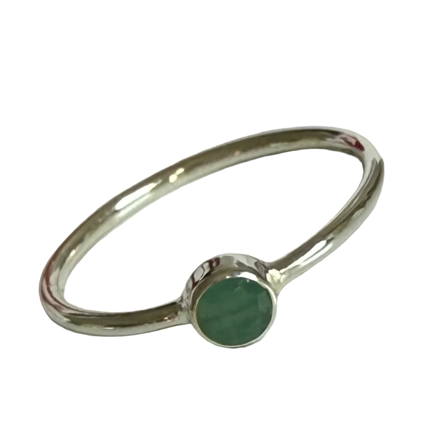 Sleek, simple and effortlessly wearable, this tiny emerald stacking ring is designed for everyday elegance. Featuring a natural 4 mm emerald bezel set in sterling silver, it can be worn alone for a subtle pop of colour or stacked with other rings for a layered look.