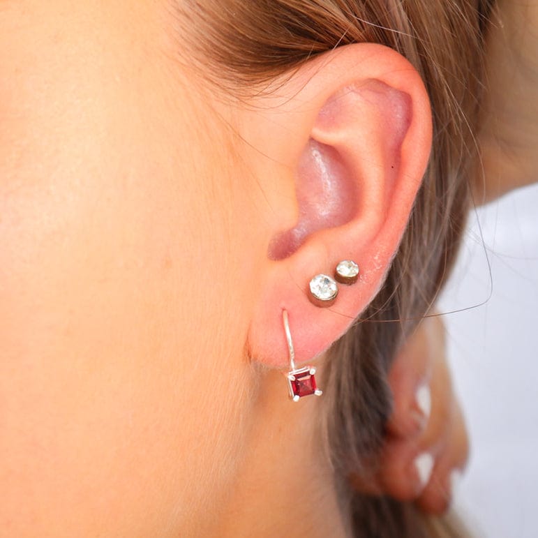 These lovely earrings are designed to sit just under the lobe and are a 4MM square-cut gem. They have a short silver hook and will look fabulous whenever you wear them. Perfect for those who prefer an understated yet classy look.