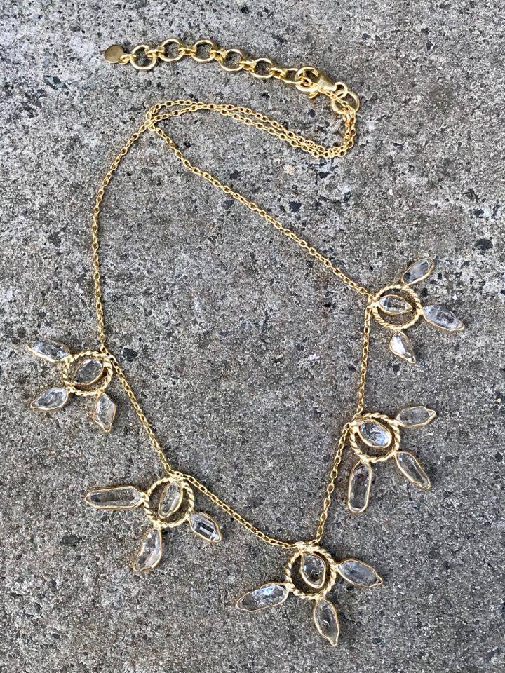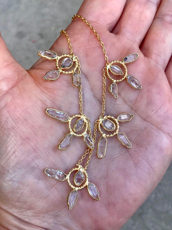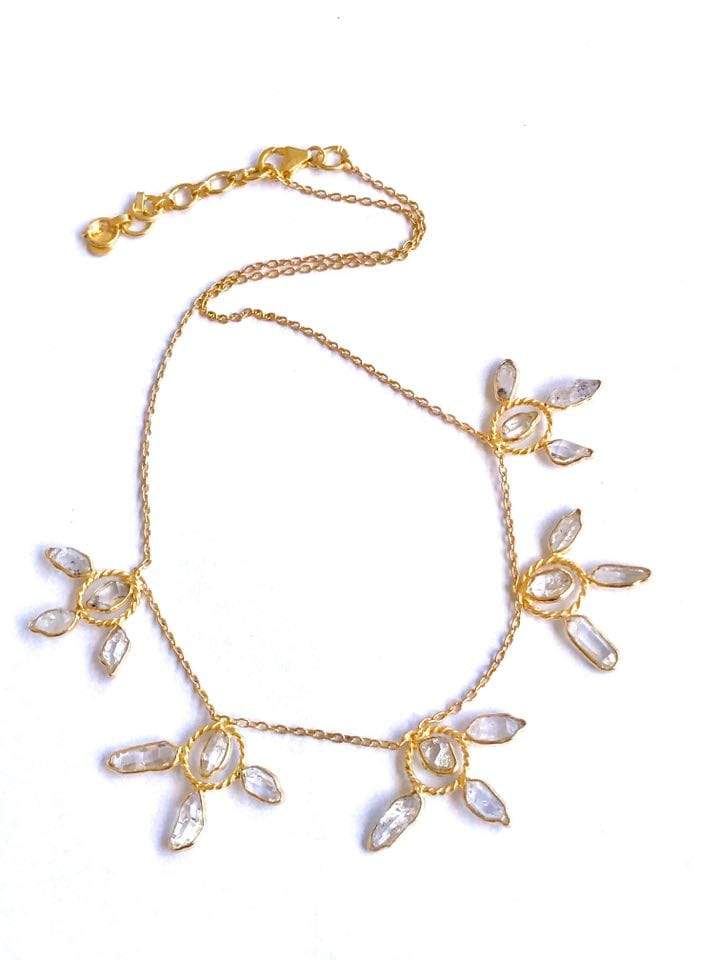 Elegant boho-luxe at it's beautiful best, this decidedly feminine Herkimer Diamond necklace has been handcrafted with twenty natural Herkimer Diamonds in Sterling Silver and finished with an 18 Carat Gold Vermeil.
