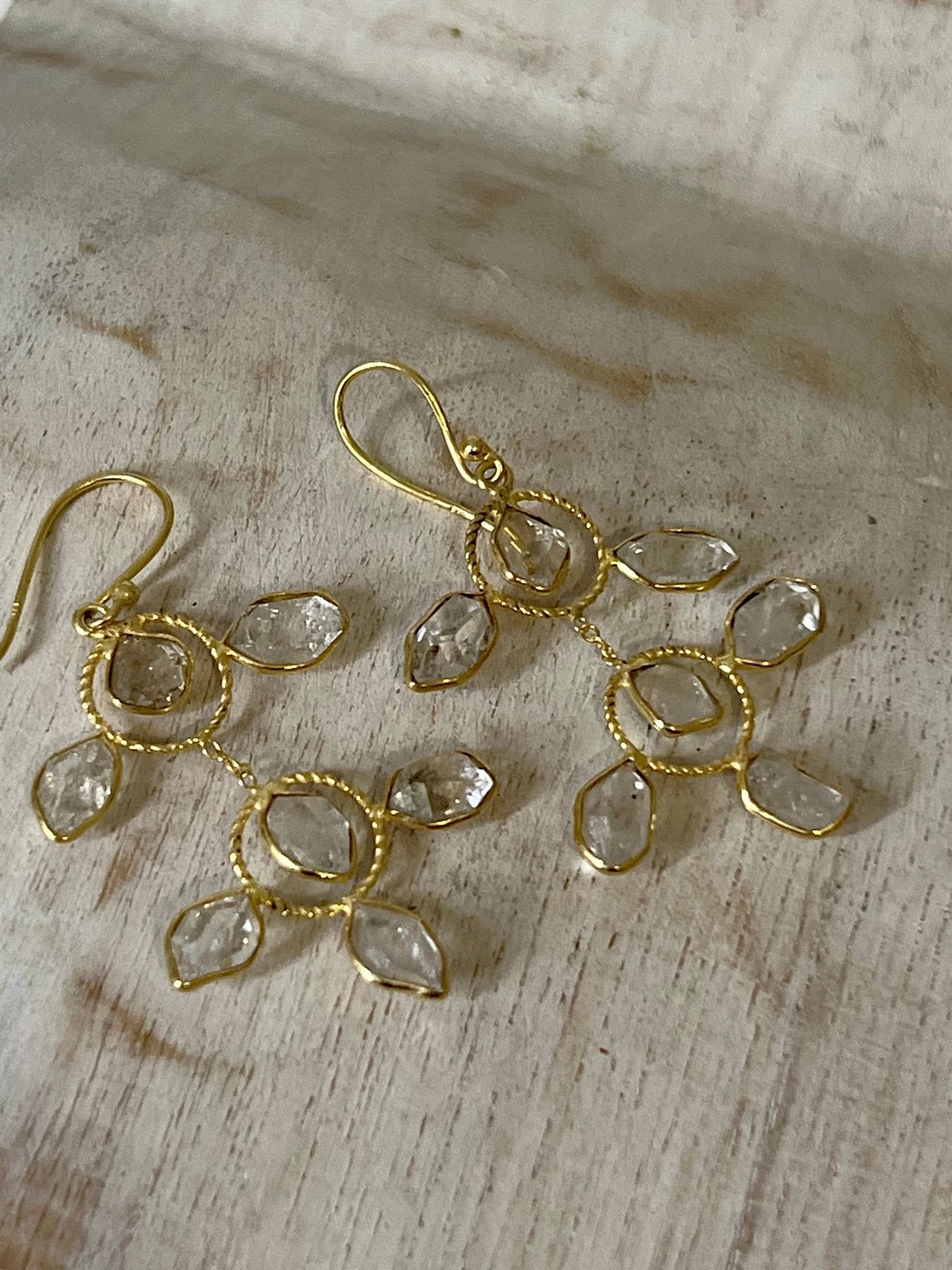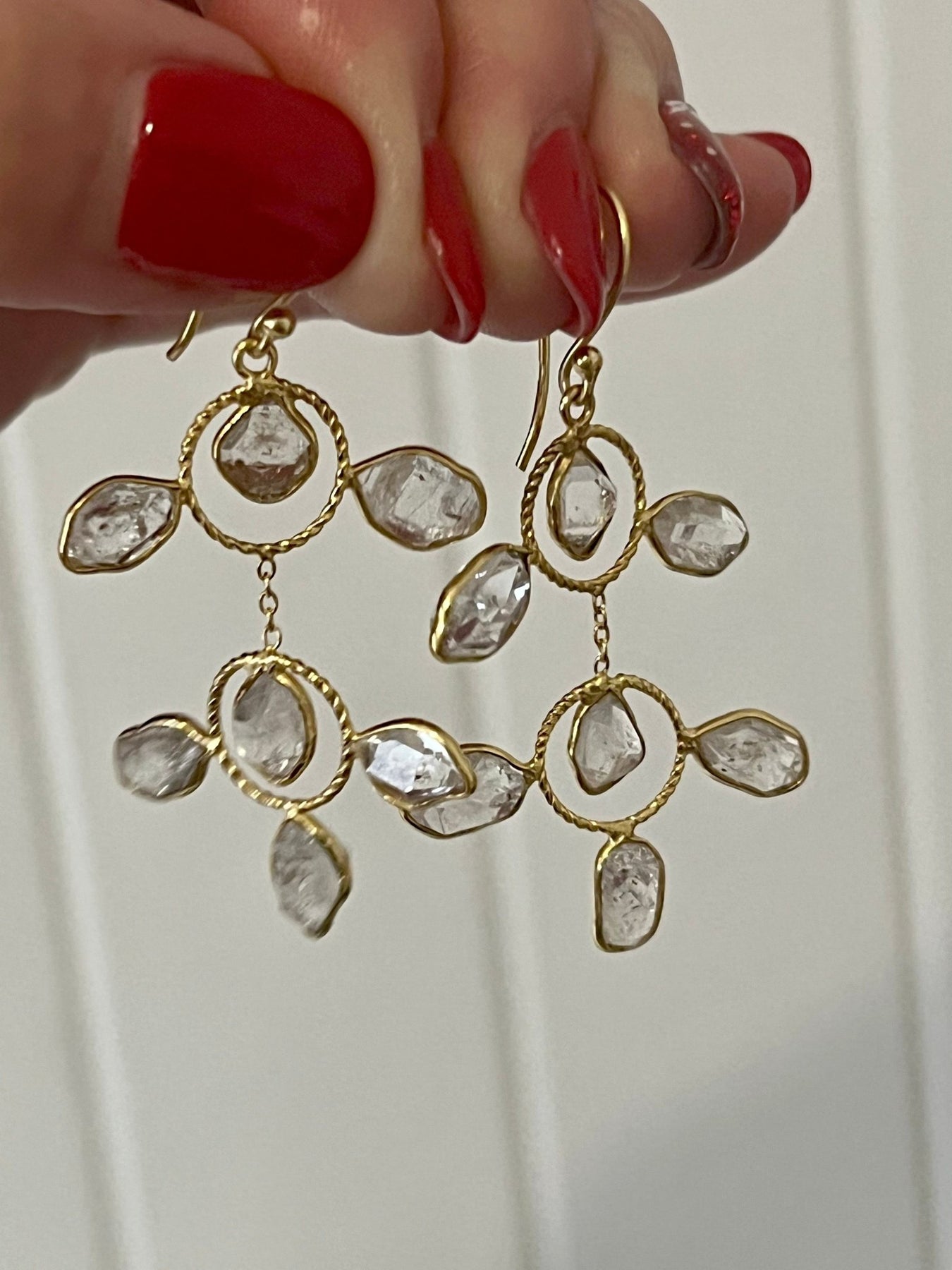 With the lower section attached with chain links these herkimer diamond dangle earrings dance as you move and catch all the light. They are deceptively light which makes them so comfortable to wear and you'll want to wear them often.