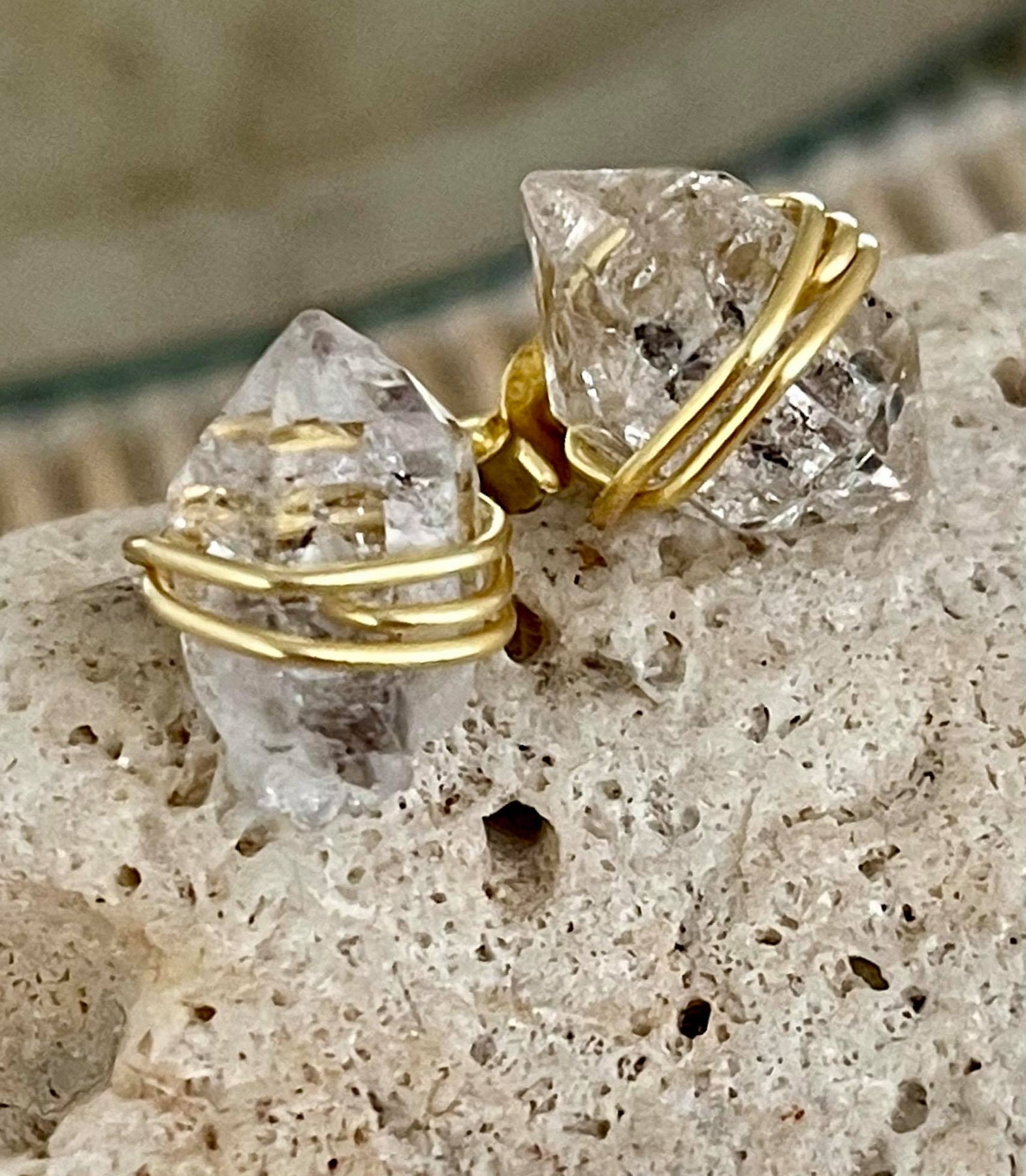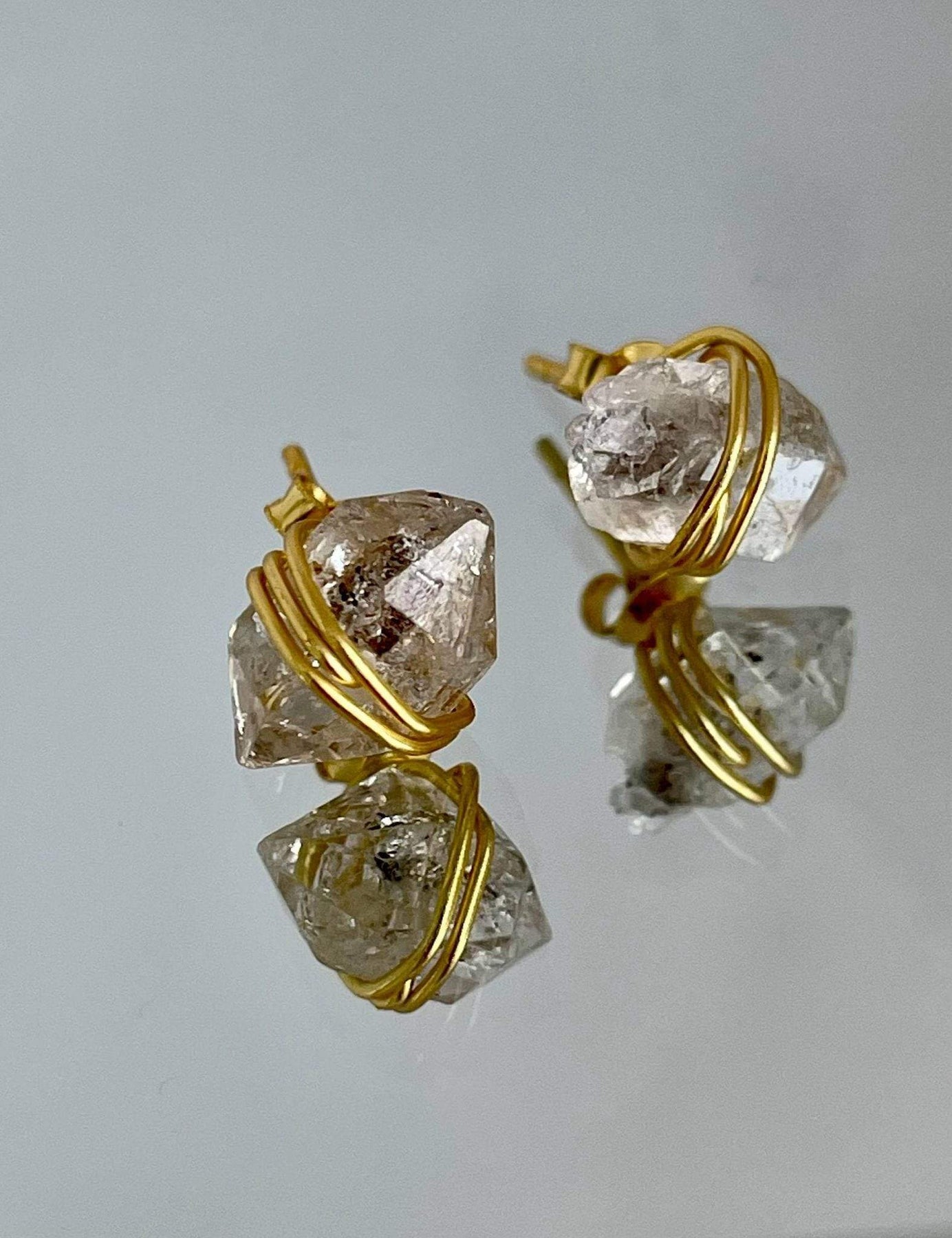 We welcome to our Herkimer Family these yellow gold Herkimer Diamond stud earrings which will soon be your next fave's!