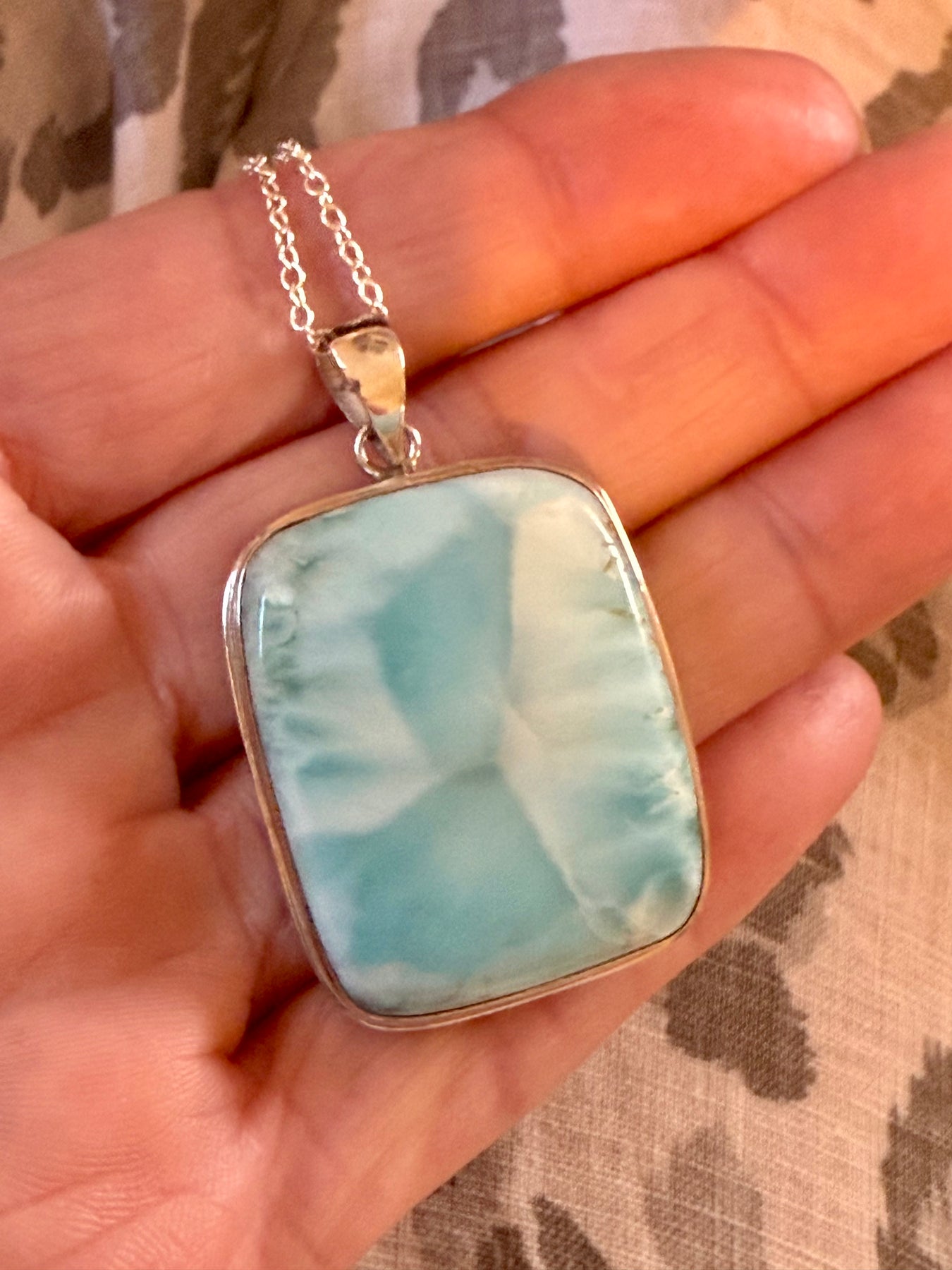 This Large Larimar Pendant holds that same ocean energy. You’ll feel it the moment you put it on, that quiet calm that softens your breath and steadies your mind. It’s the kind of piece you reach for when life feels a bit loud, or when you just want to carry a little piece of the tropics with you wherever you go.