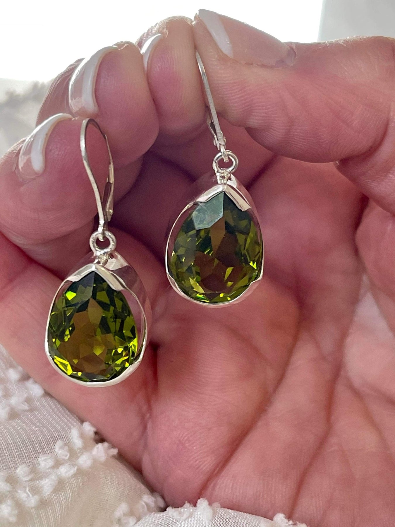 Gorgeously stunning, these new peridot teardrop earrings are simply beautiful. They will sparkle and shimmer and the way the light will shine through will make these even more special.