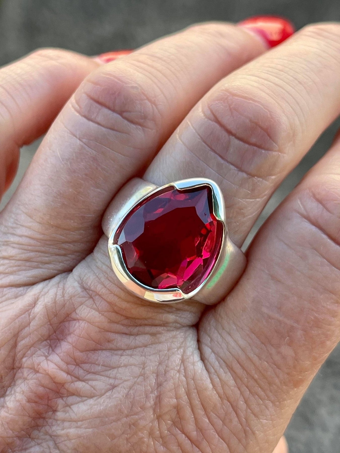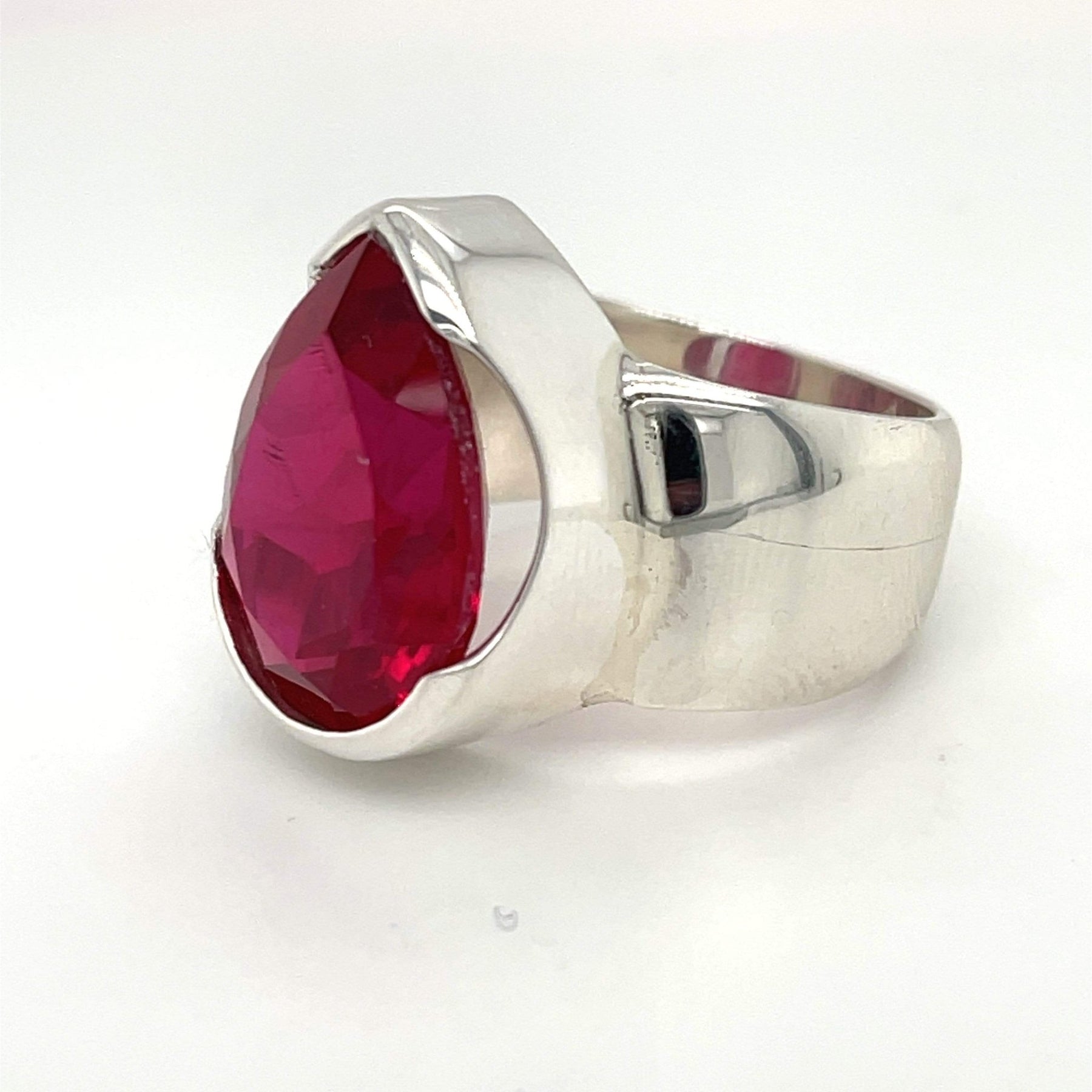 Do you believe in love at first sight? When you see this absolutely dazzling and stunning ruby teardrop ring you certainly will. Handset in high-quality sterling silver, this magnificent ring is big and grand and will certainly be a talking point whenever you wear it. The deep ruby red colour is warm and inviting and will make you feel alive!