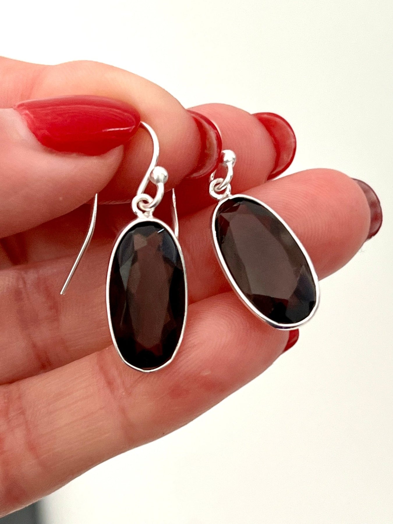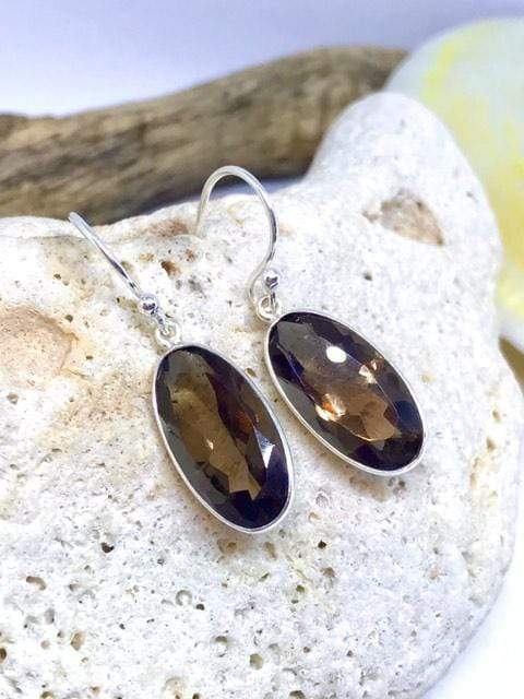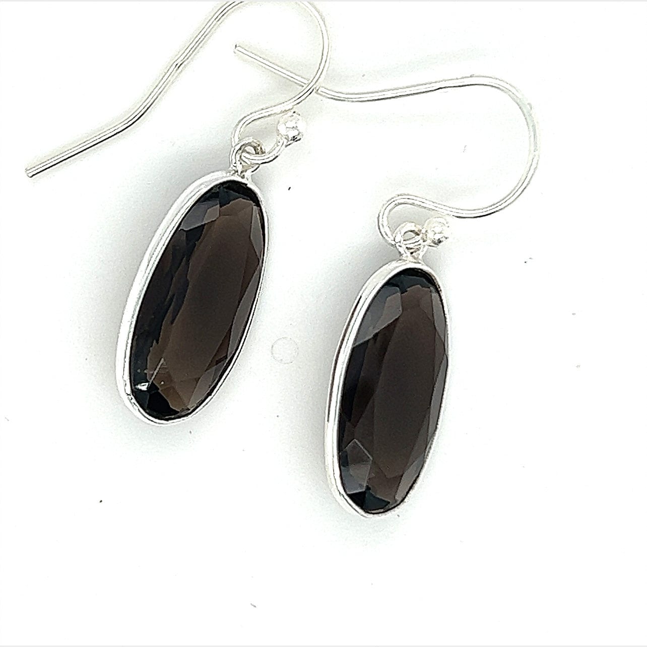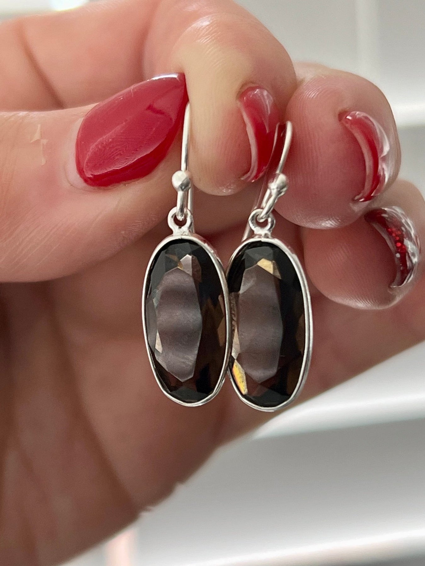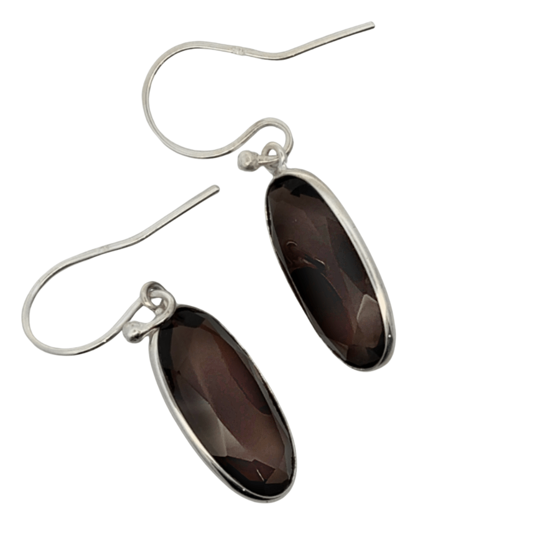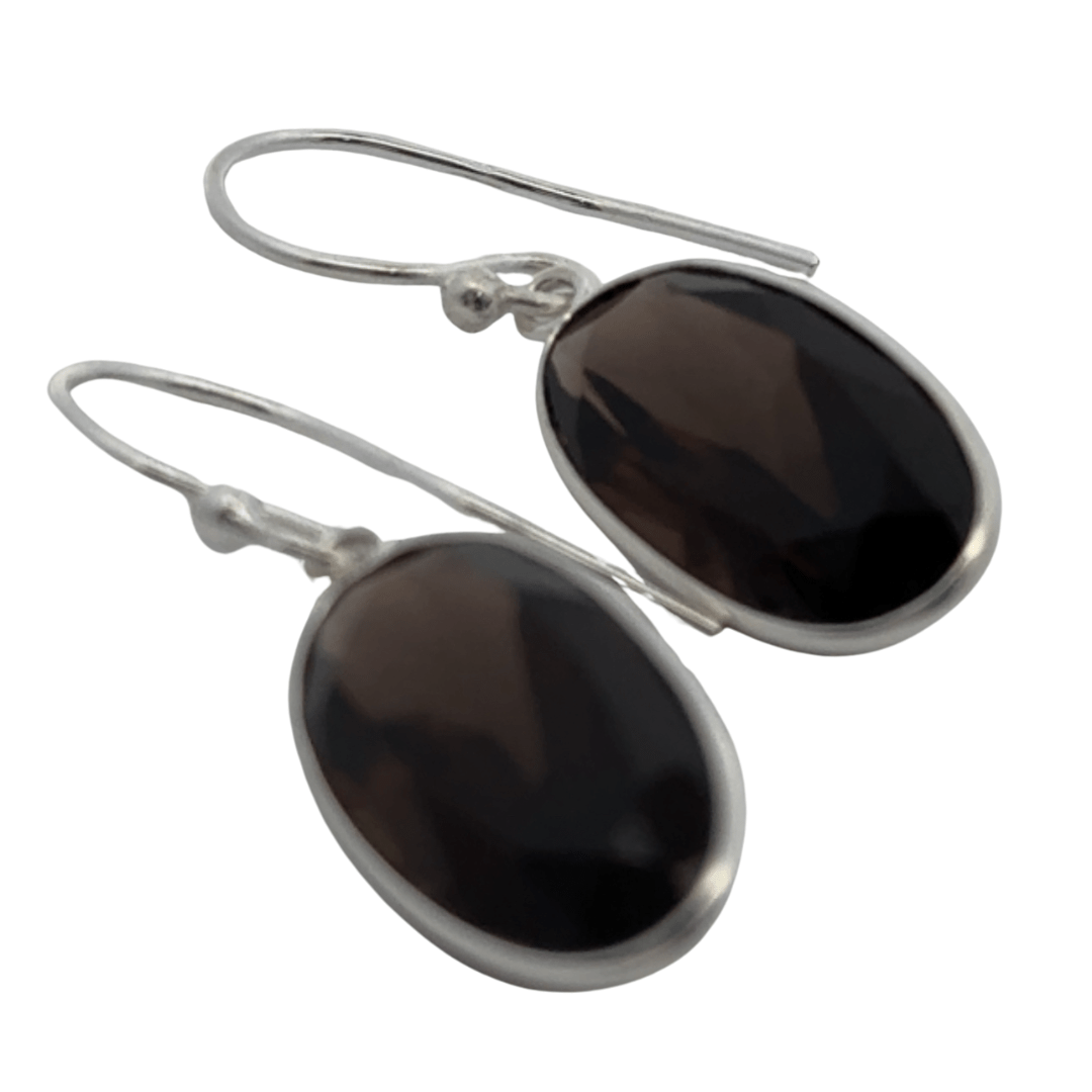 The facet cut gem is 18 x 10 MM and the total drop from tip of hook is 33 MM, big enough for the breathtaking stone to take centre stage and shine bright. Keeping it simple and all about the Smoky Quartz, we've set it in a Sterling Silver bezel.