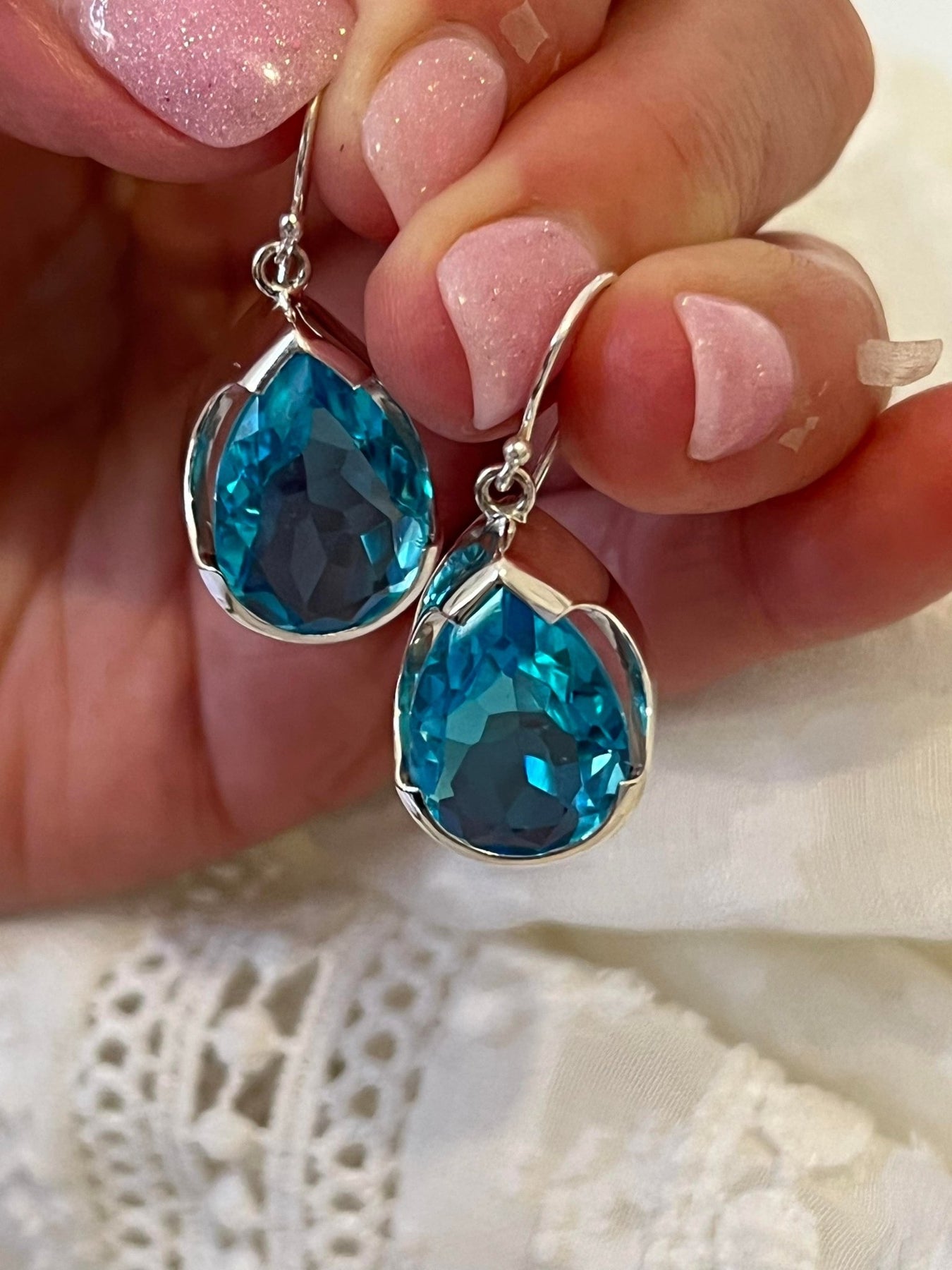 CLICK HERE TO SEND SOMEONE A HINT YOU'D LOVE THEM TO PURCHASE THIS FOR YOUSWISS BLUE TOPAZ TEARDROP EARRINGS
