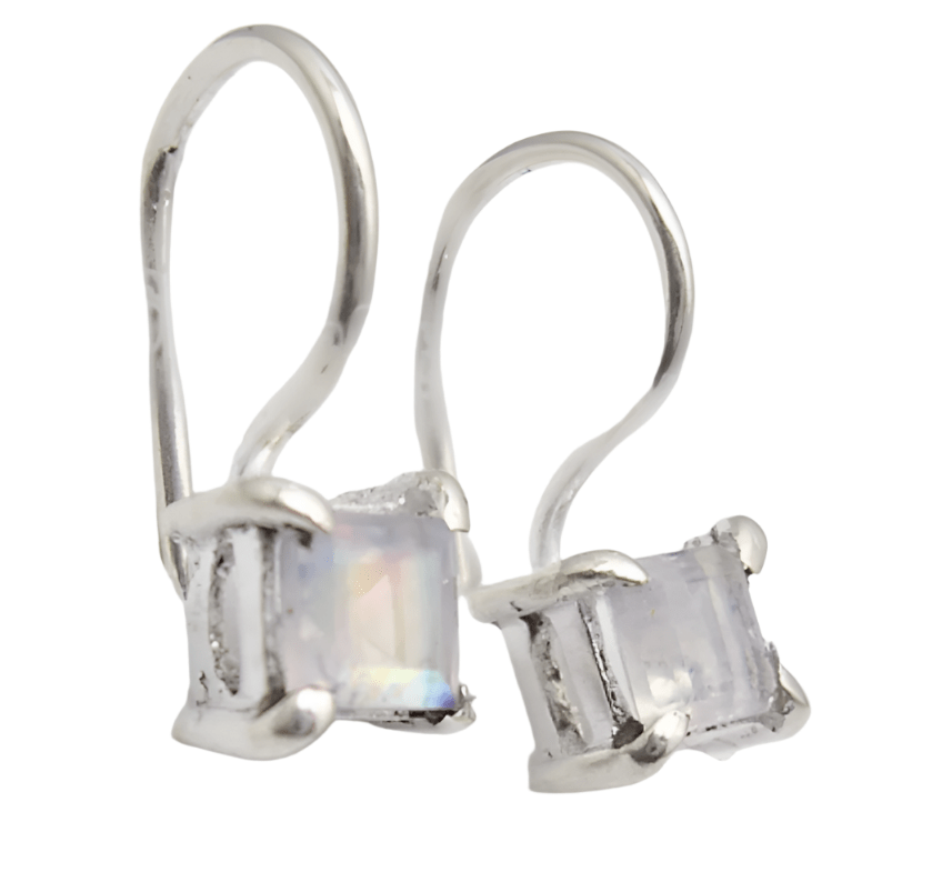 These dainty drops showcase moonstone's signature adularescence - a magical blue sheen that seems to float within the stone. Each earring catches light beautifully, creating a subtle play of colours that adds mystique to your look.