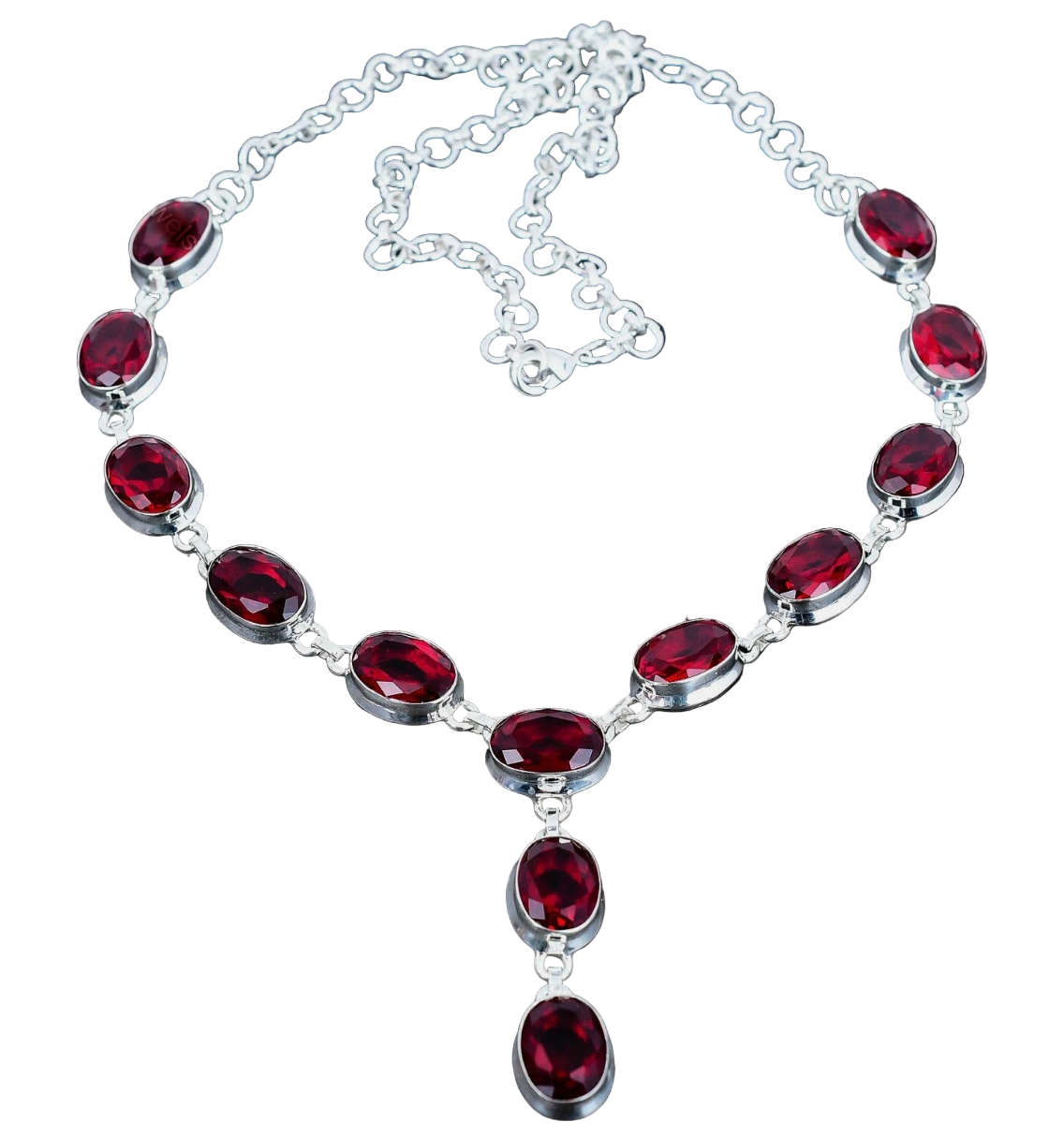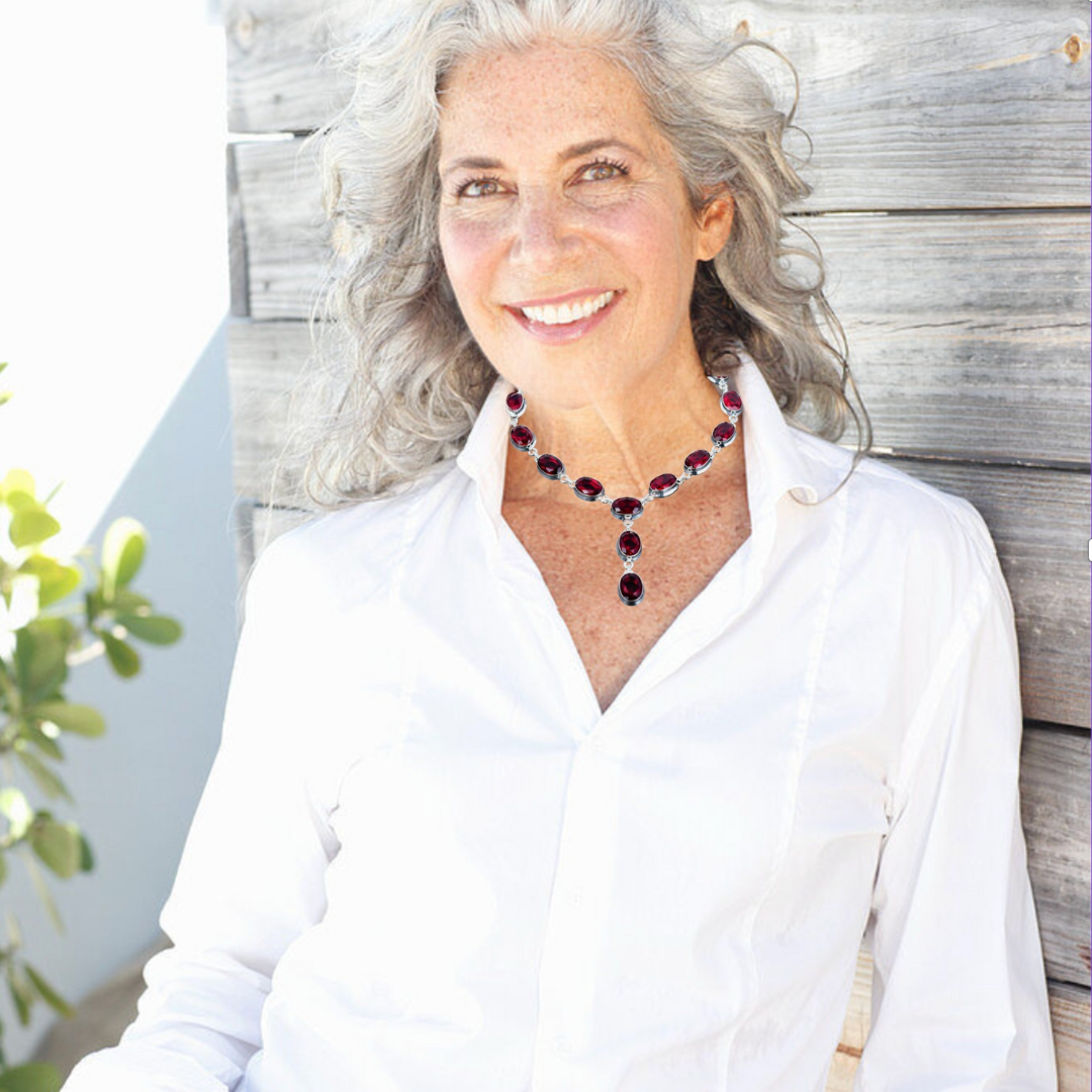 The Garnet Luxe Necklace is crafted for the woman who feels deeply, leads with her heart, and knows the strength in embracing her fire. Featuring 13 richly coloured garnet gemstones (each 14x10mm) set in solid sterling silver, this piece is made to be felt as much as seen.
