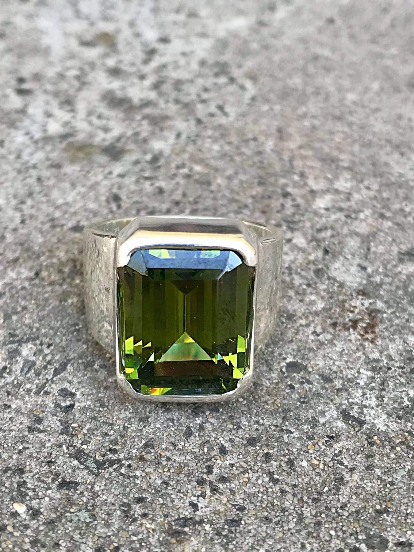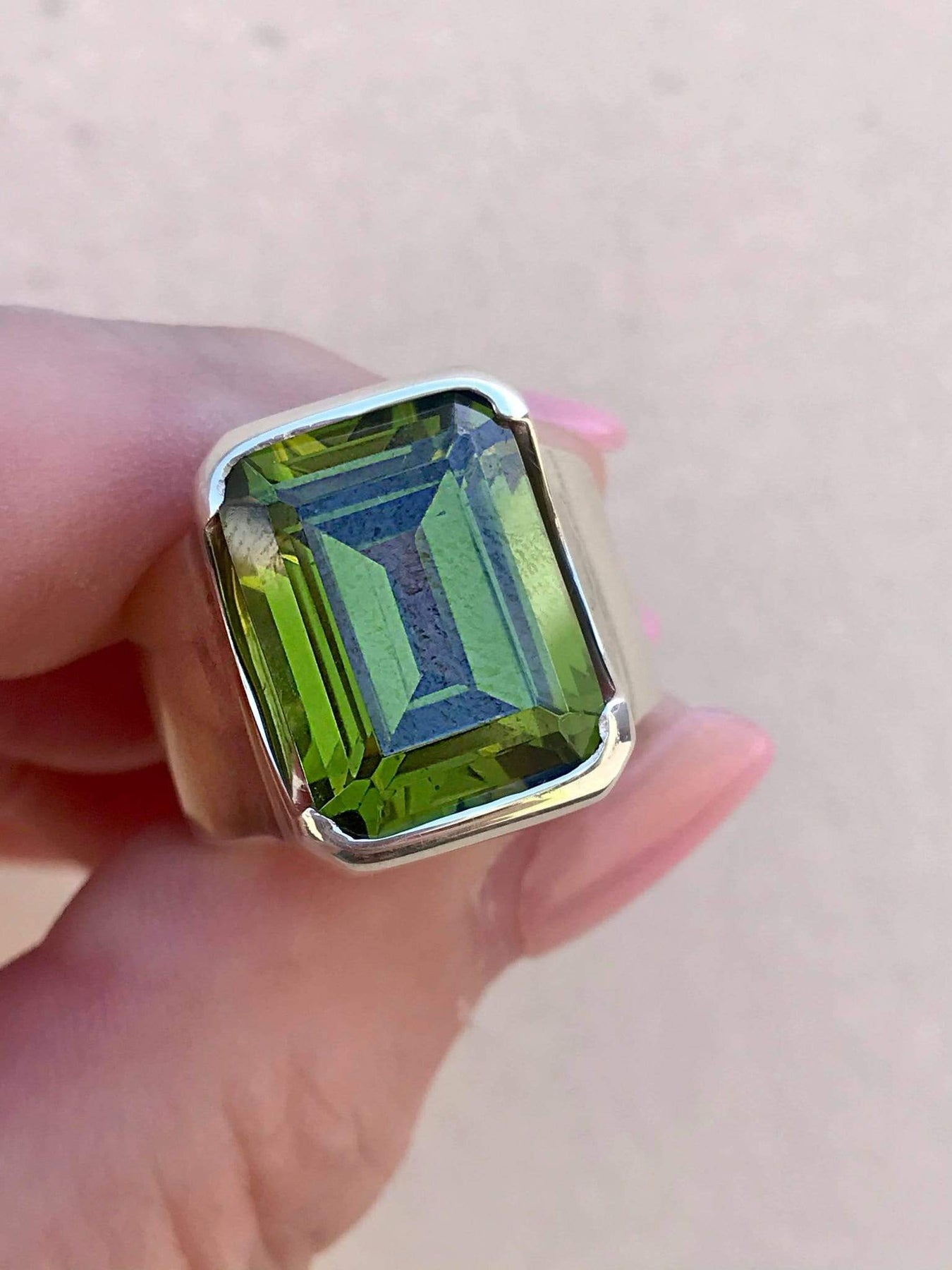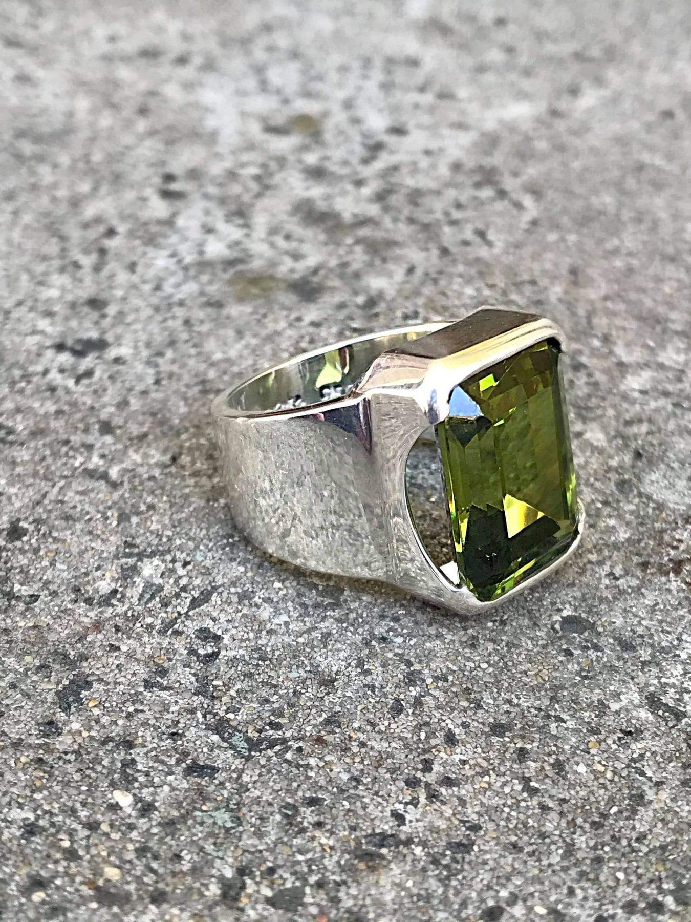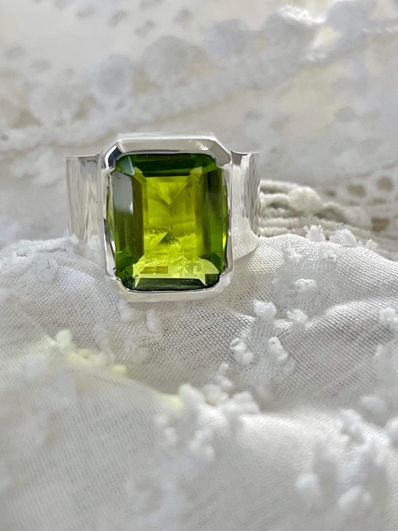 Why do we love this emerald-cut peridot ring? Well, firstly her unique green hue adds radiance and is refreshingly light, bright and a perfect accent for summer.