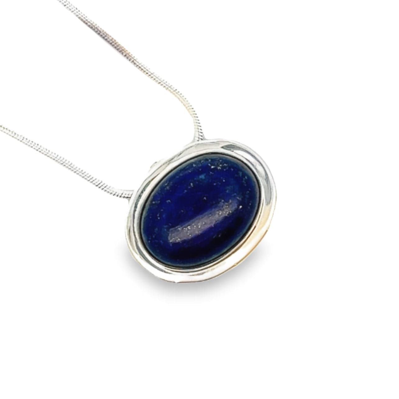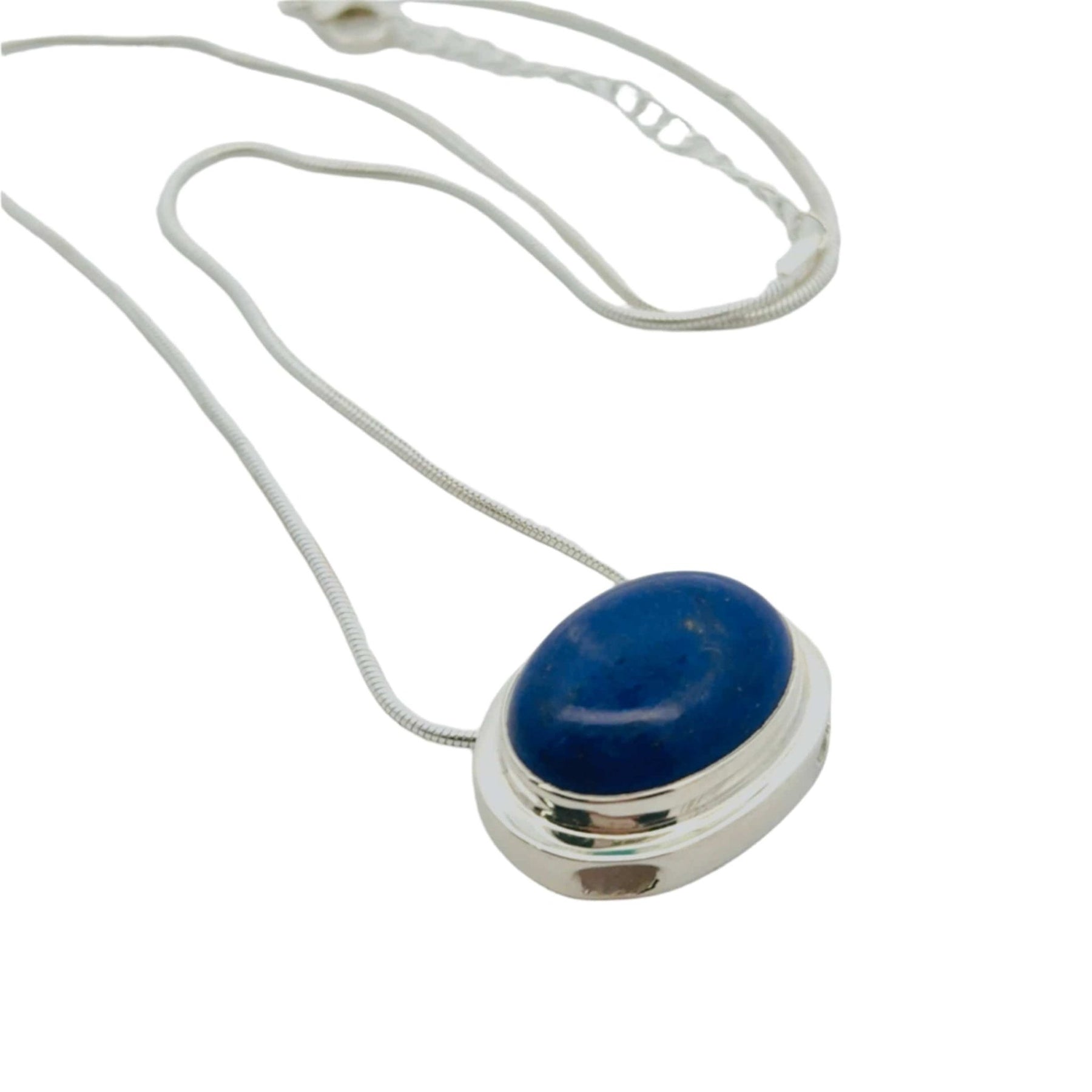 Our stunning Lapis Lazuli Necklace is a captivating piece that promises to stand out beautifully whenever you wear it. This necklace features a deep royal blue coloured Lapis Lazuli stone paired with a sterling silver chain measuring 40 CM in length, creating a timeless and elegant accessory.