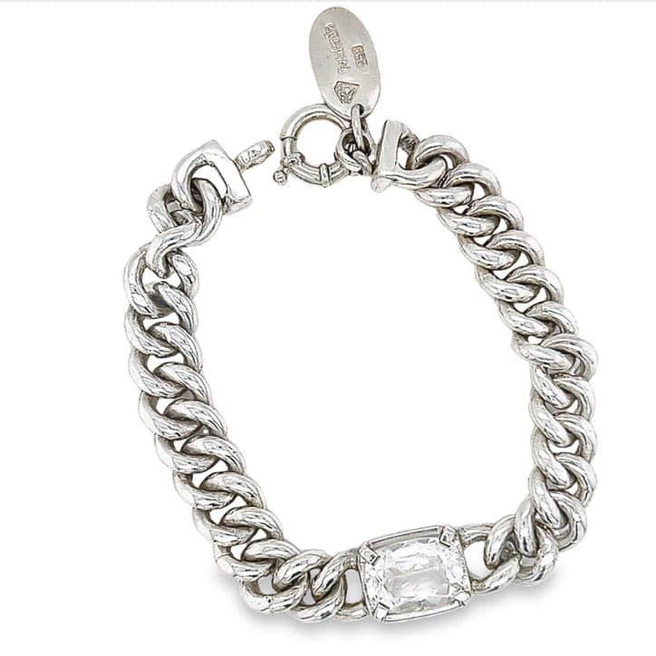 This chunky sterling silver bracelet needs no introduction. She's powerful, bold, and ready to command attention! Crafted from thick sterling silver with a coveted chain design and bolt ring clasp, it's a sight to behold. And for a touch of bling, we've included one of our favourites - the stunning White Topaz.