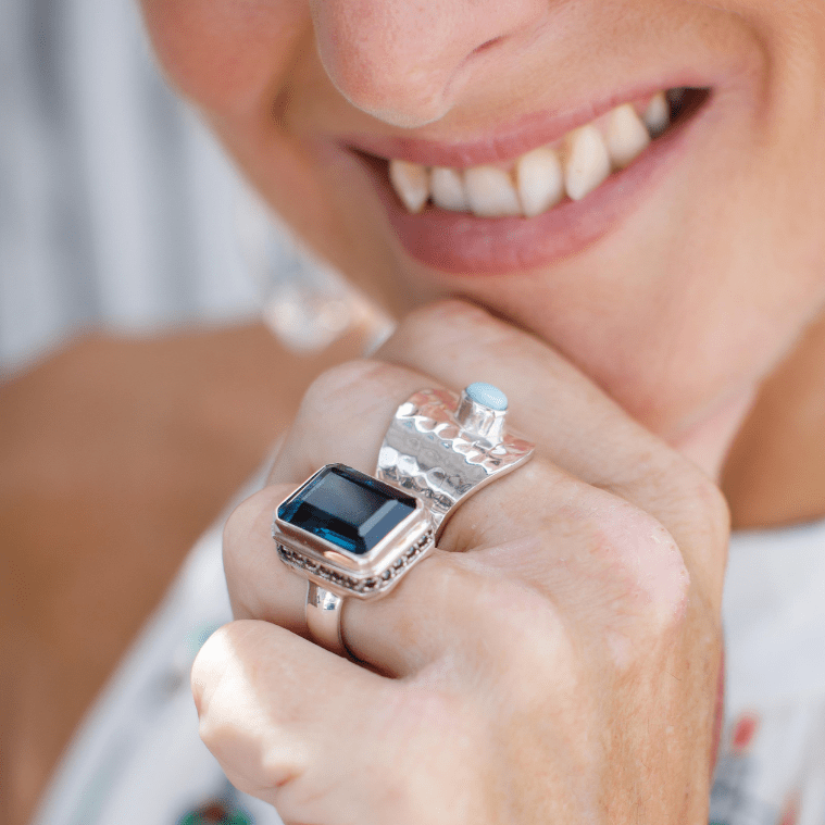 CLICK HERE TO SEND SOMEONE A HINT YOU'D LOVE THEM TO PURCHASE THIS FOR YOUMake an entrance with the Halo Luxe London Blue Topaz & Onyx Ring - a bold statement piece designed to captivate.