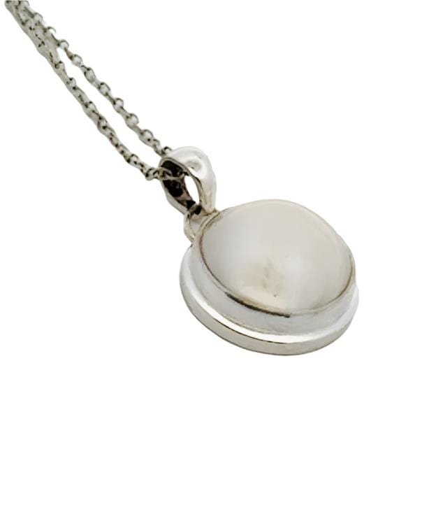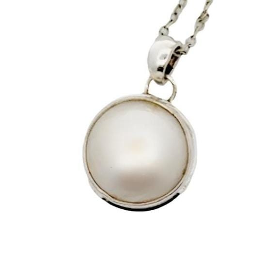 Introducing our elegant Pearl Pendant, a perfect blend of sophistication and versatility. This exquisite piece features a lustrous round pearl, renowned for its natural beauty and iridescent glow. Set in shiny silver it creates a classic and timeless look that will make you feel both classy and fabulous.