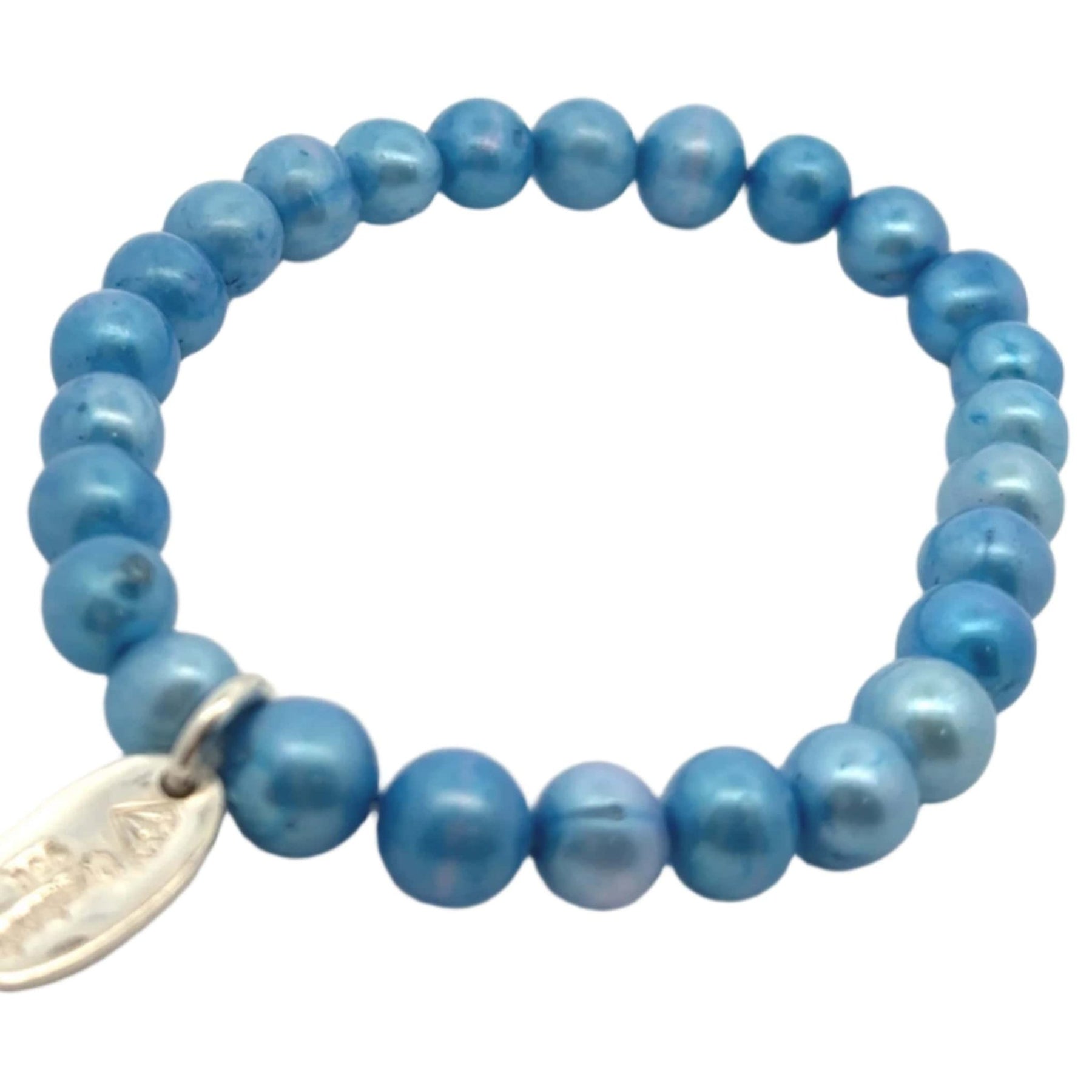 The Simplicity Azire Pearl Bracelet is a stunning piece that combines timeless elegance with a touch of the extraordinary. This bracelet features an unusual, bright yet gentle bright sky blue that's sure to turn heads and spark conversations.