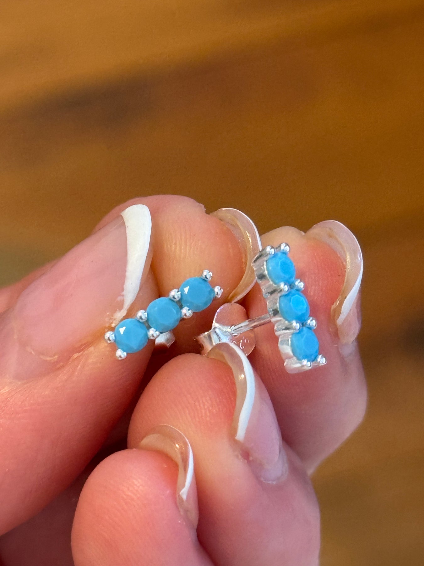 If you’re searching for dainty sterling silver turquoise stud earrings that are small, bright and easy to style, this 10 x 2 mm triple stone bar design will be your new go‑to.