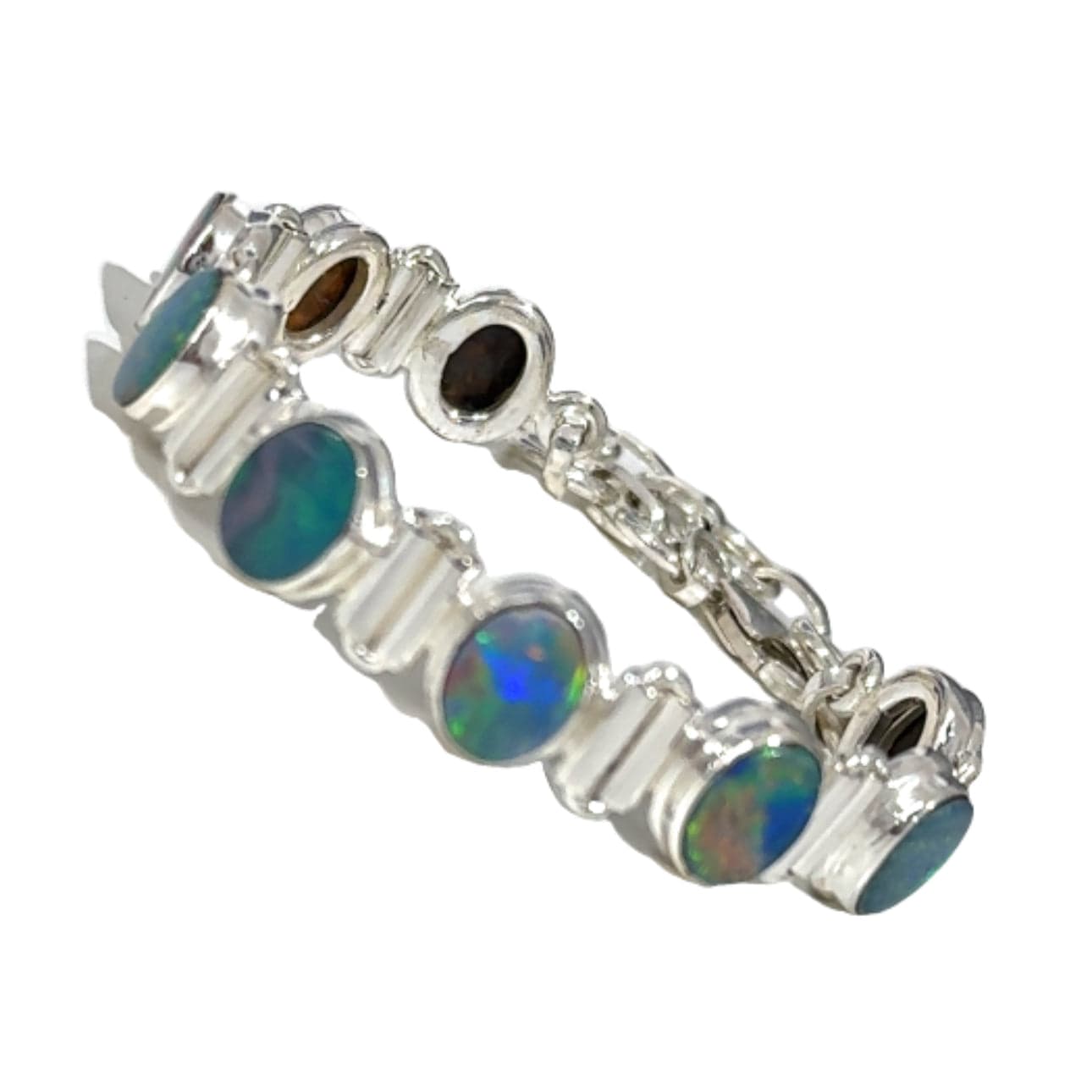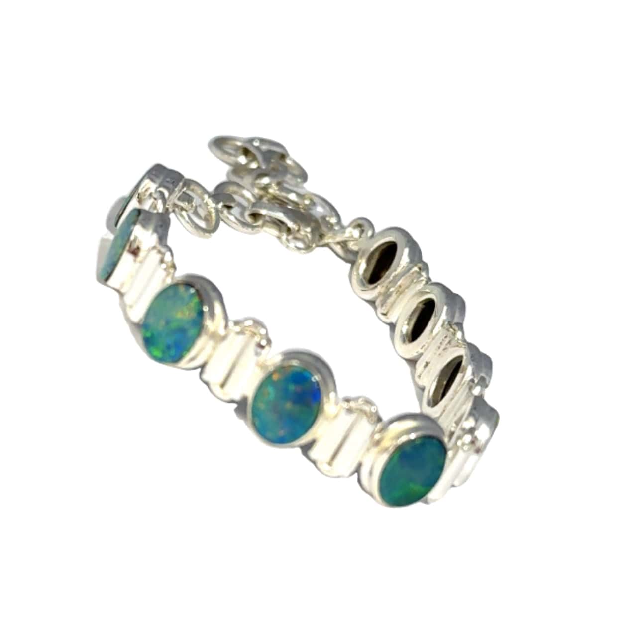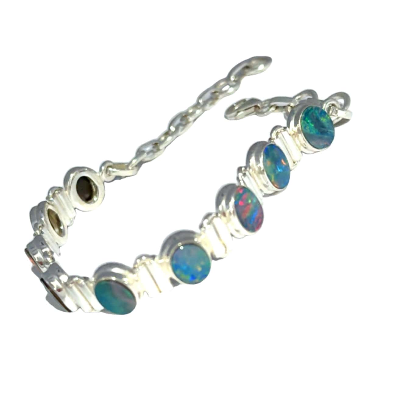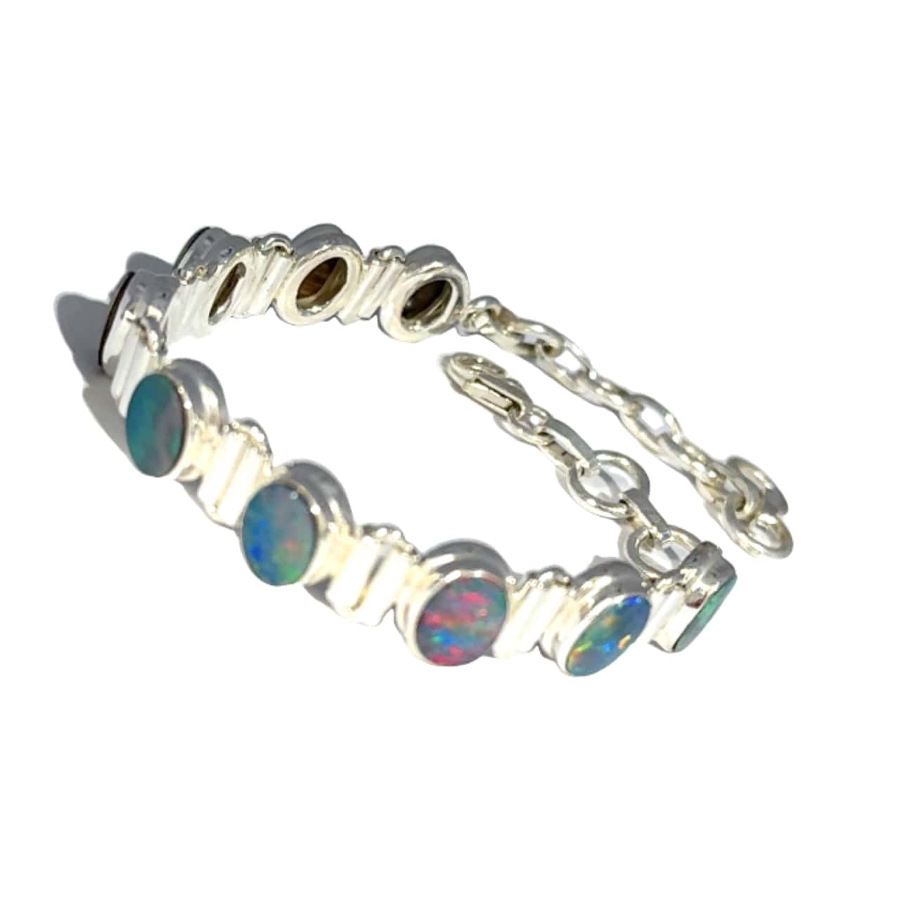 Who can resist the dazzling colours of Opals? The captivating colours glow as the light makes them shimmer differently from all angles. Warning, wearing this Australian Opal Bracelet may cause you to gaze at them constantly.