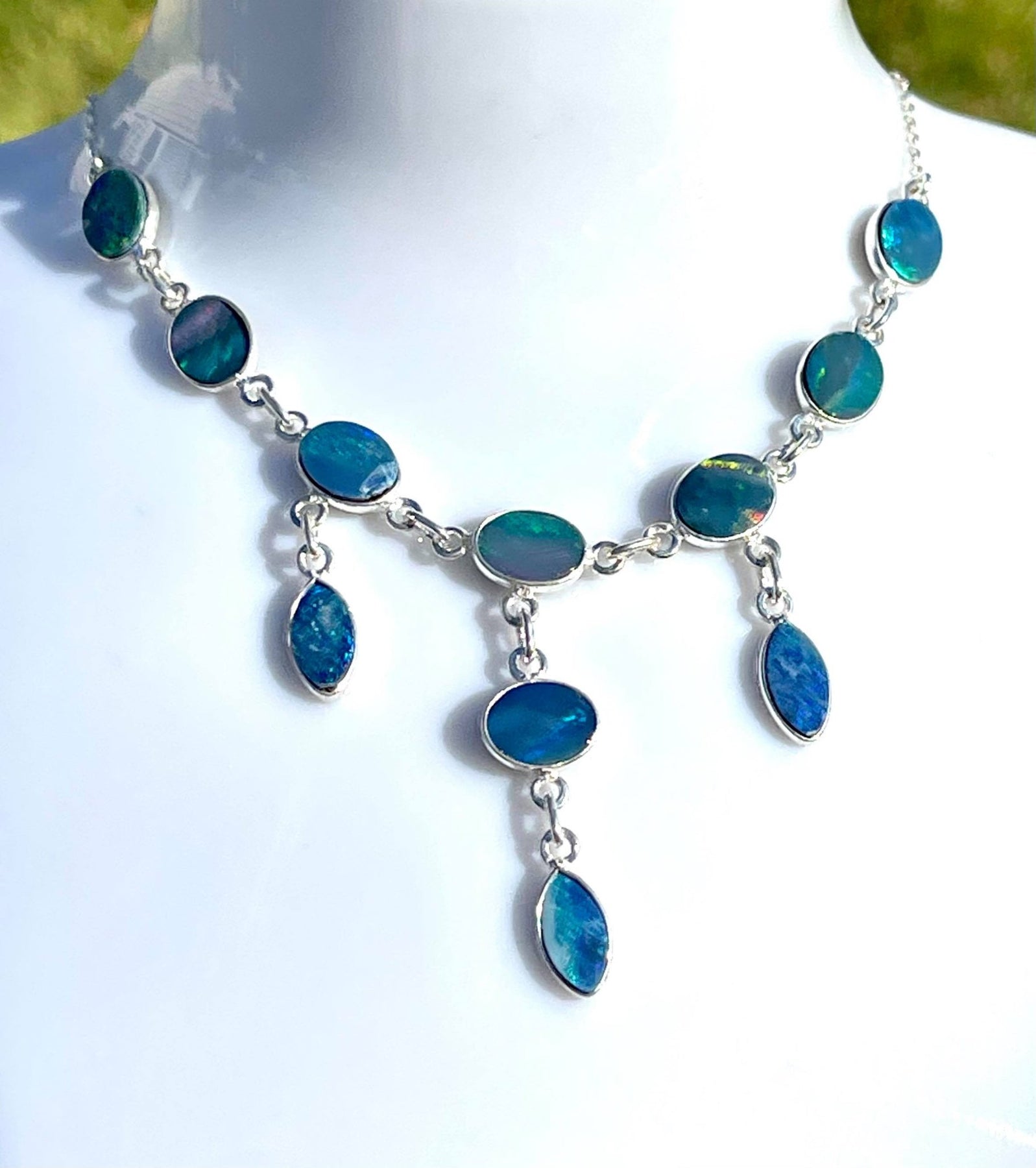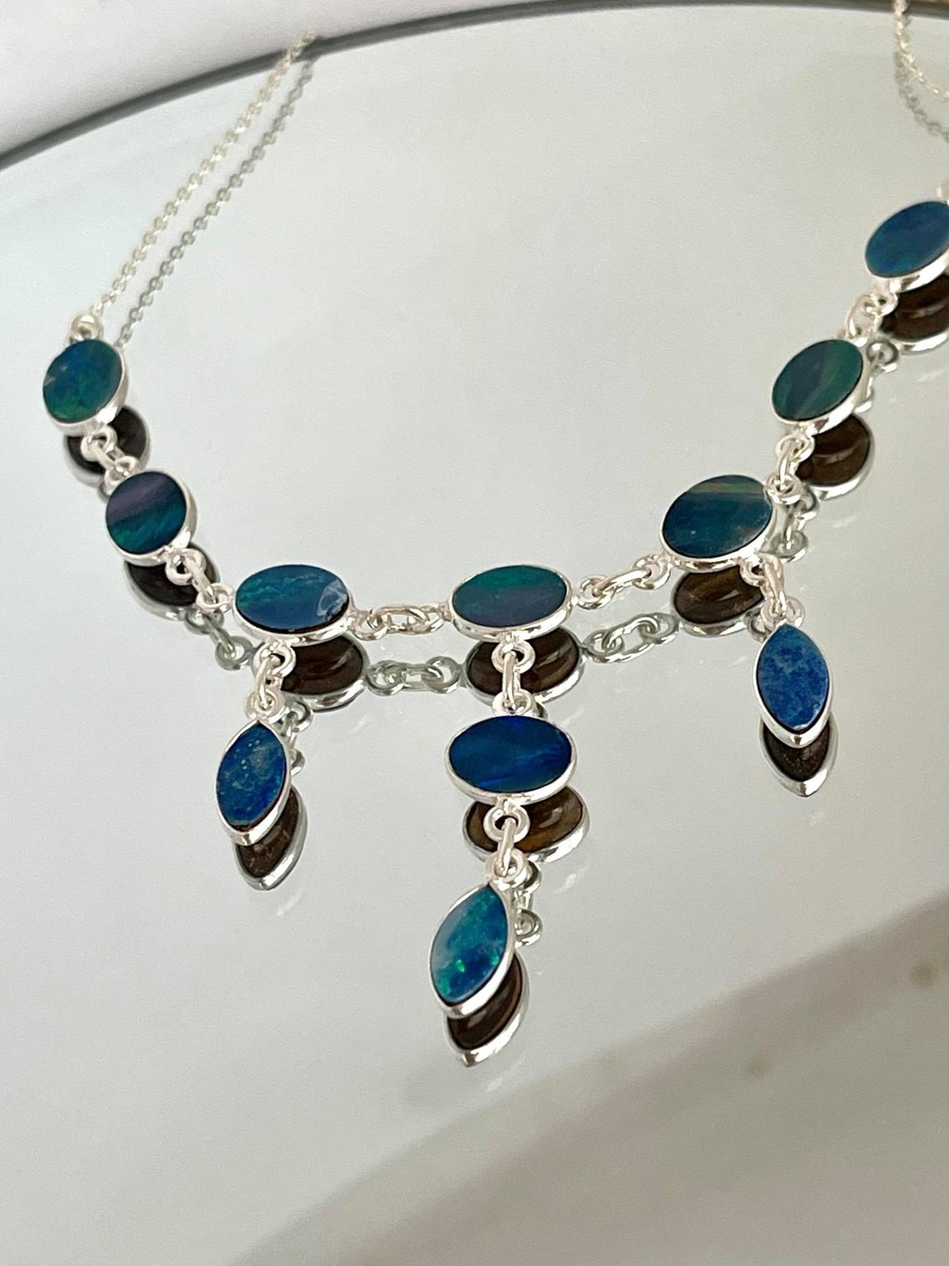 Love this beautiful opal necklace with mainly green opals - lovely colours when in sunlight. Can’t wait to wear.
