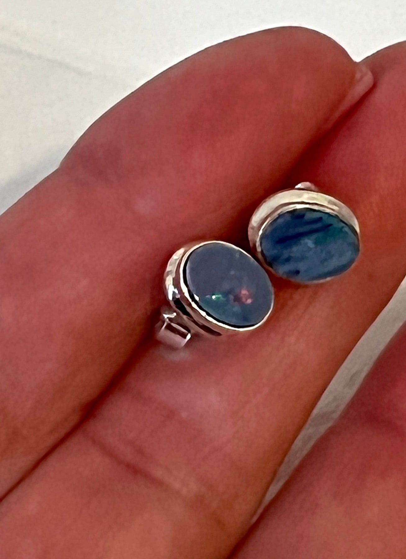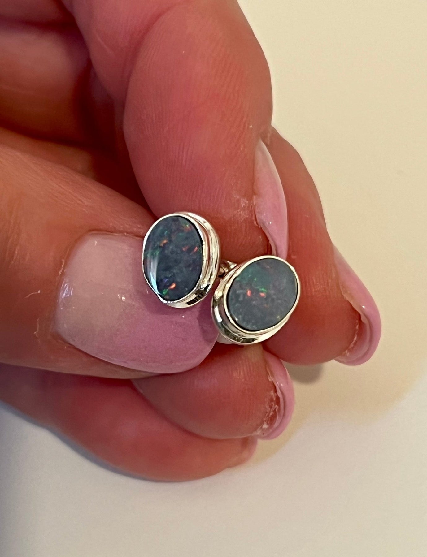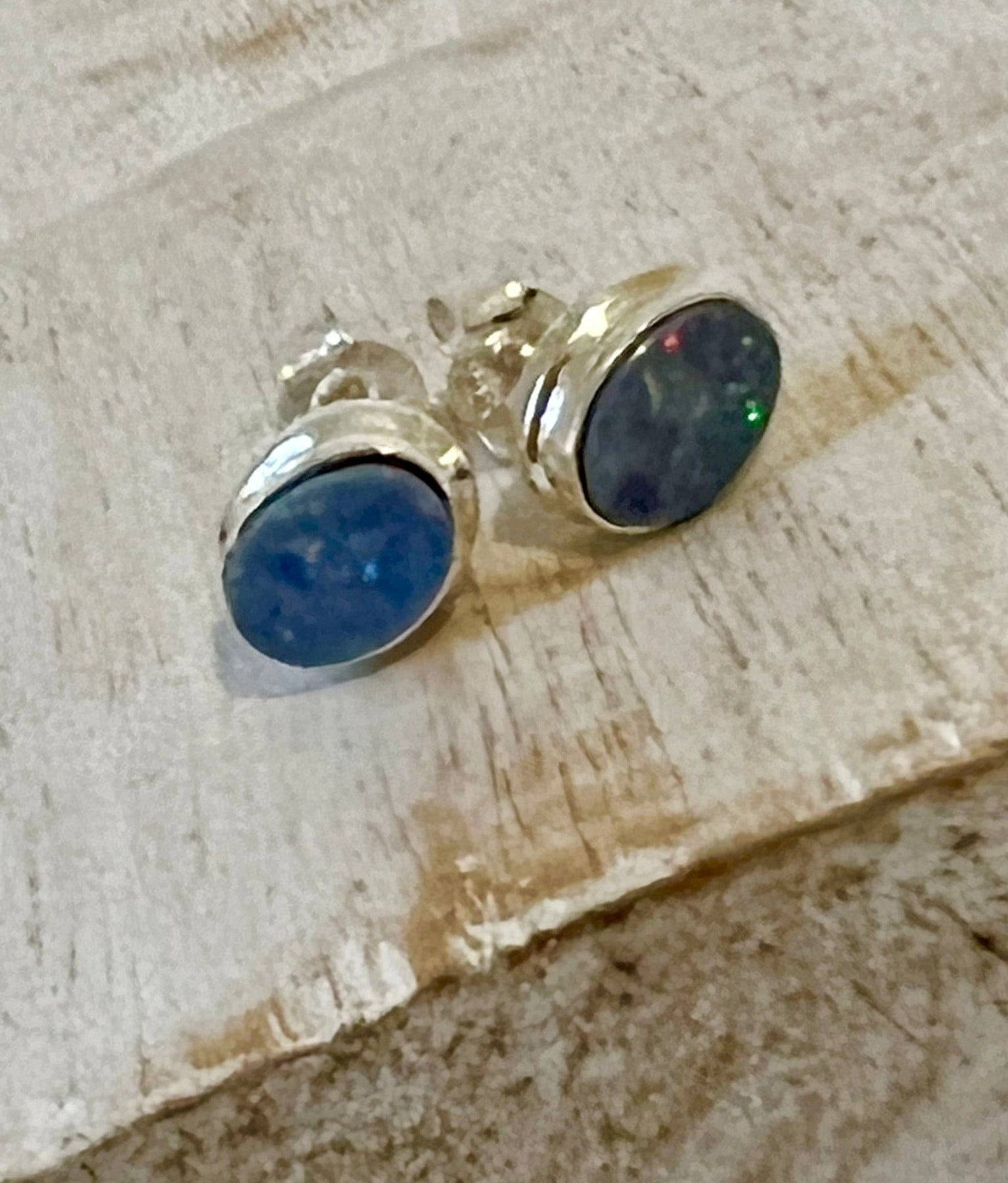 These are Australian Opal Doublets, which means a thin opal attached to another stone to make the opal less fragile and have been handcrafted with sterling silver.