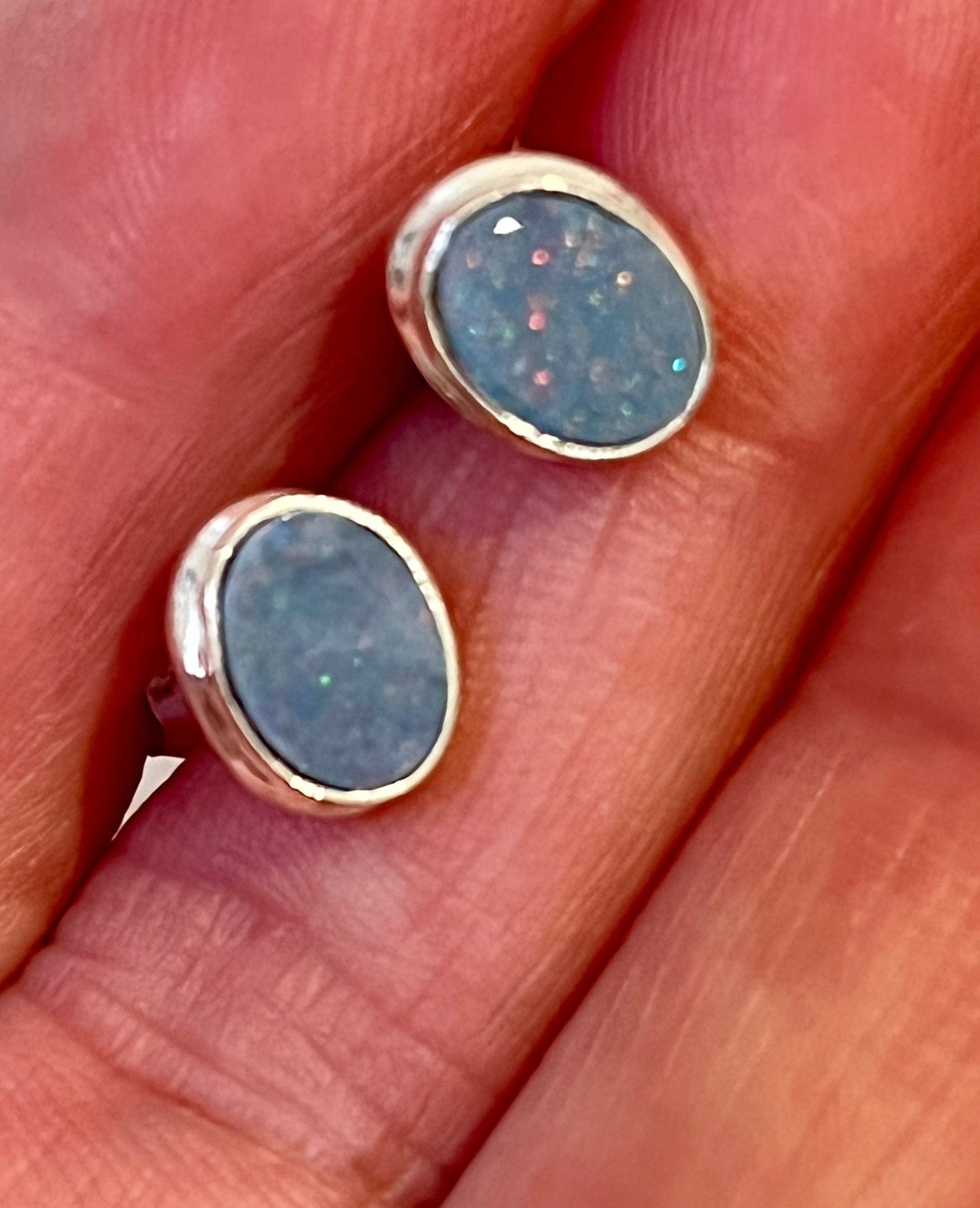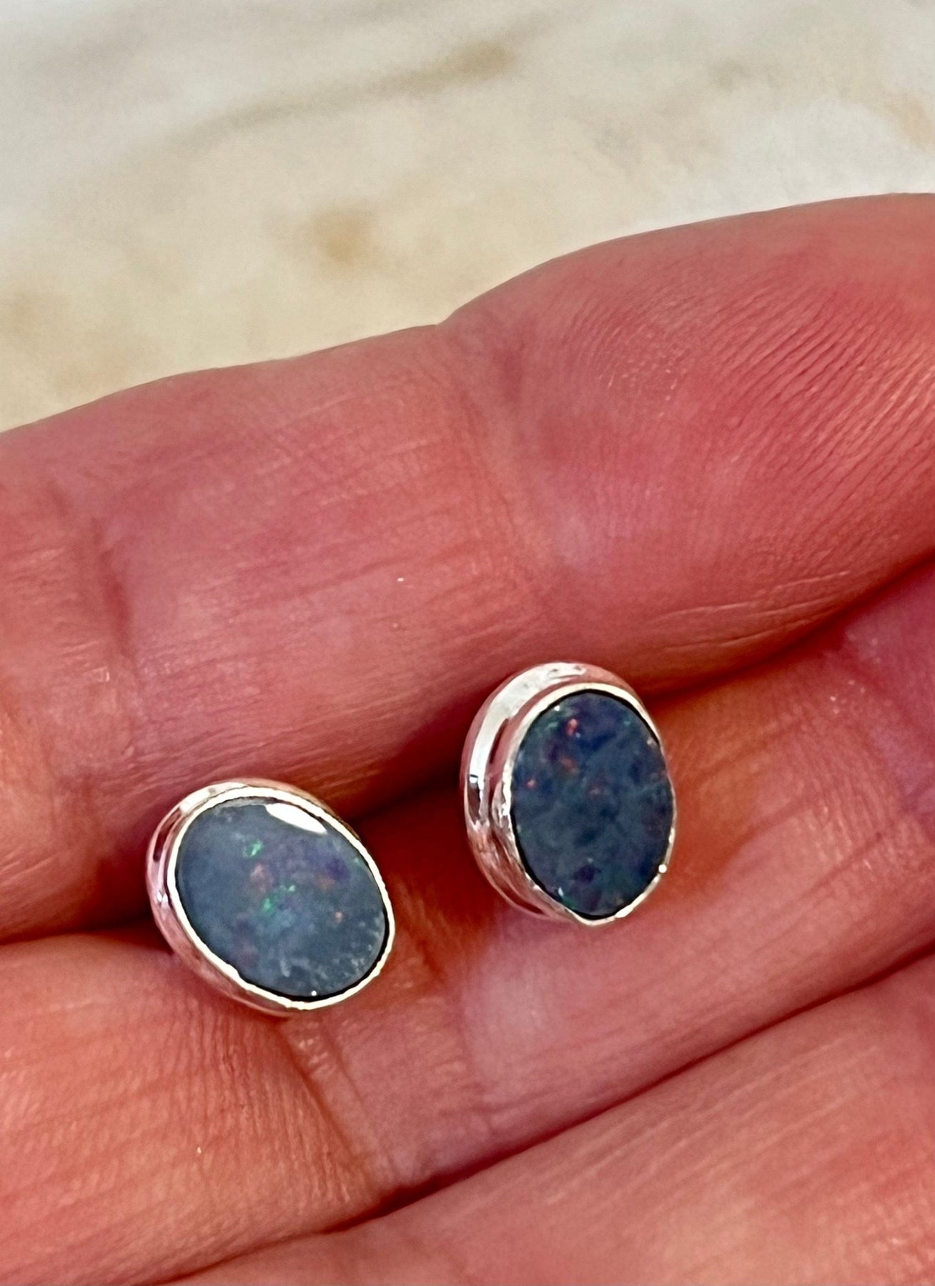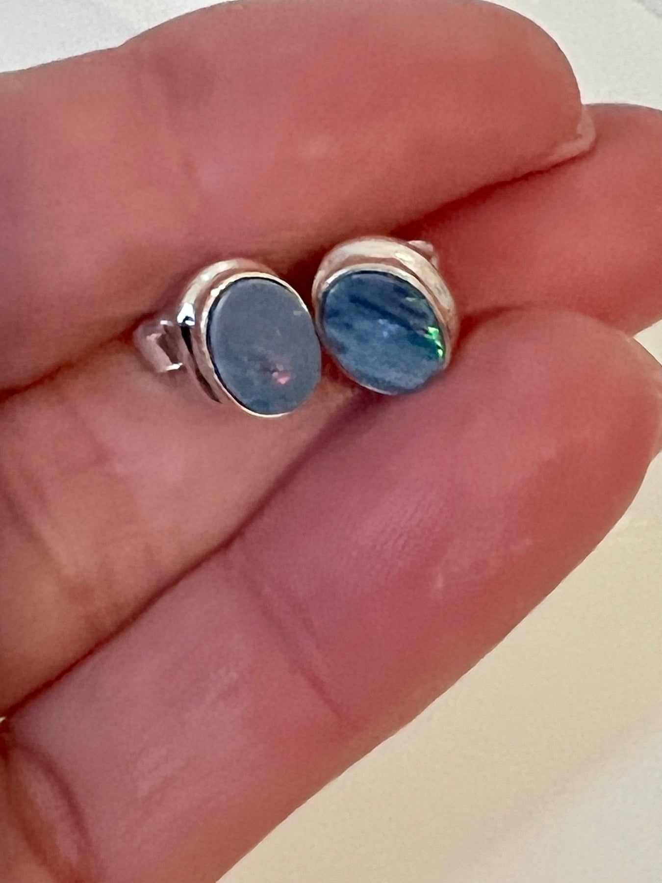 These are Australian Opal Doublets, which means a thin opal attached to another stone to make the opal less fragile and have been handcrafted with sterling silver.