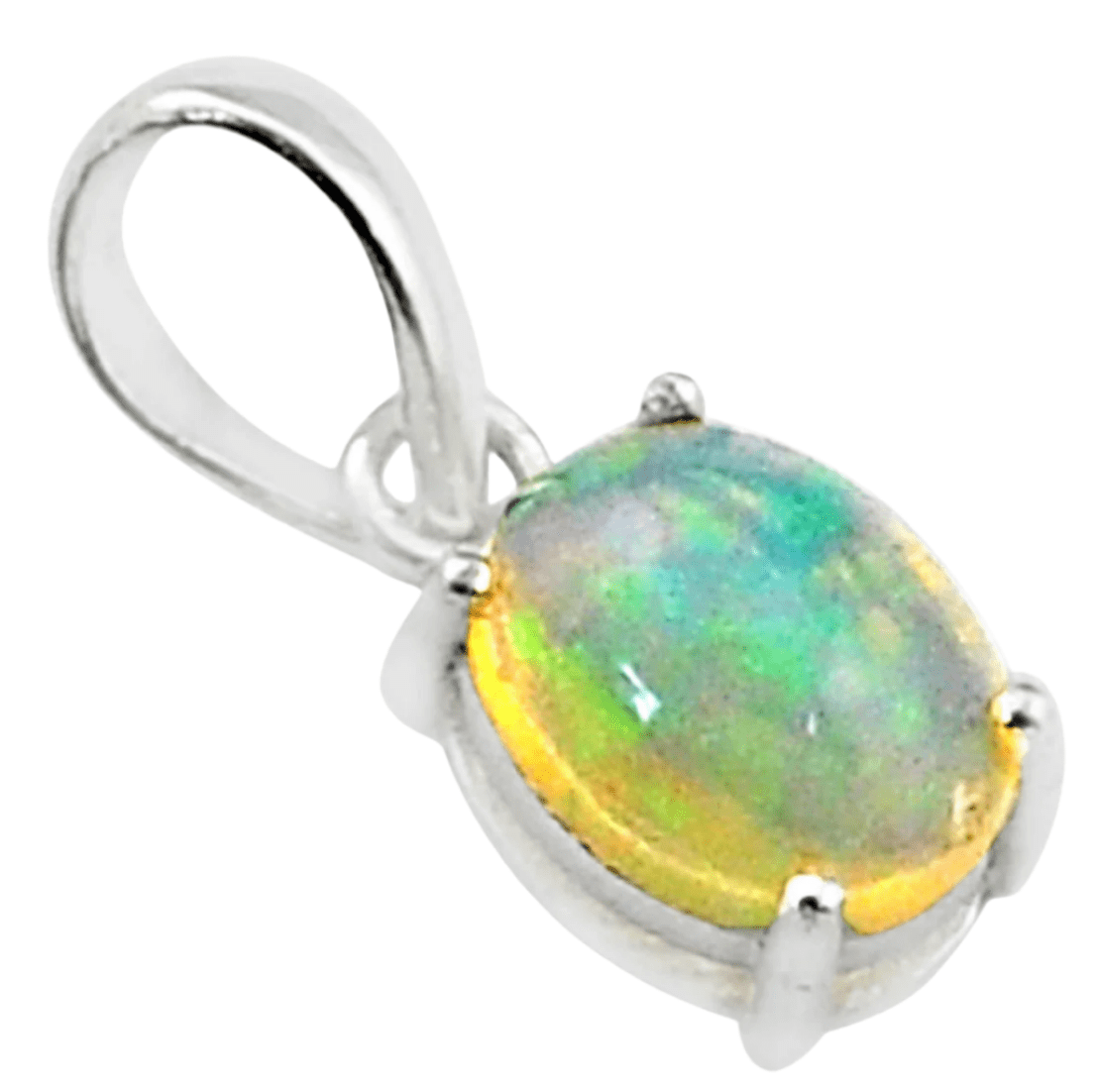 Discover the magic of our Ethiopian Opal pendant - a petite treasure that holds an entire universe of colour within its depths. This enchanting piece dances with vibrant flashes of blue, green, and golden hues that shift and shimmer with every movement.