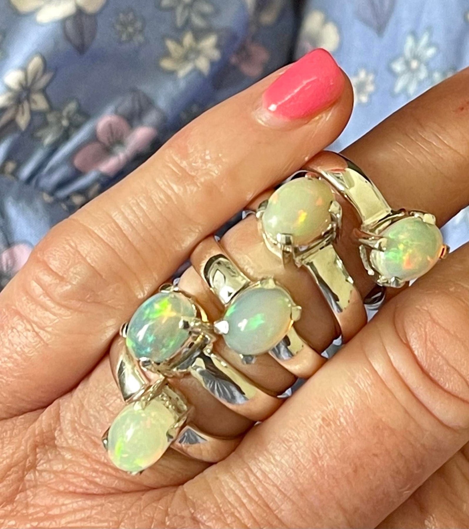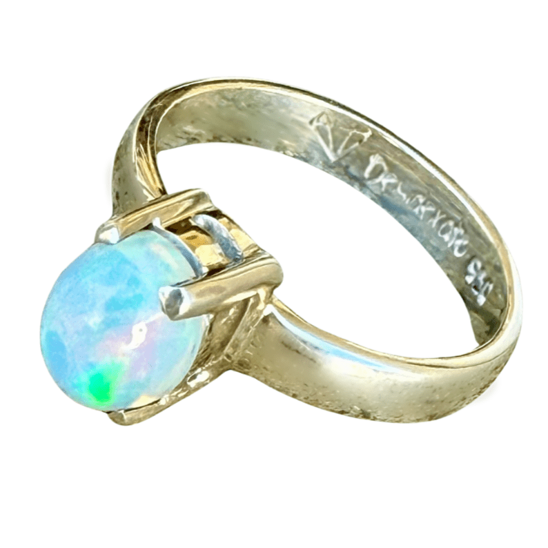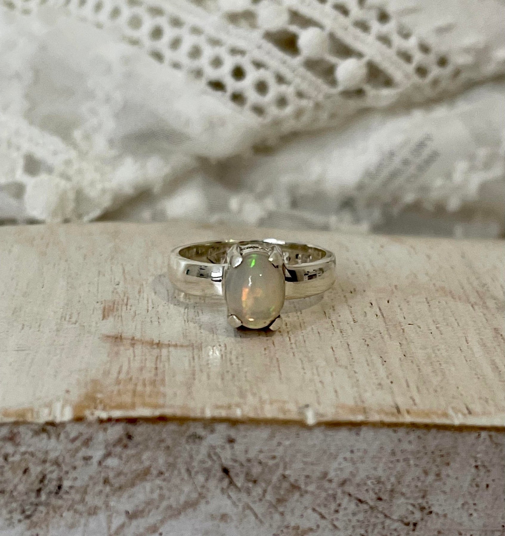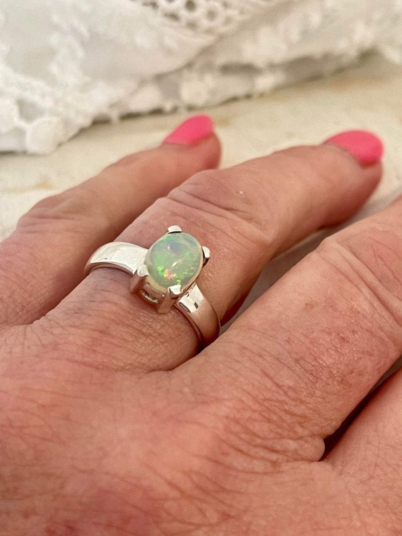 This ring is absolutely stunning. The opal catches the light beautifully, and the colours shine from different angles. It's delicate yet eye-catching, perfect for everyday wear. The simple setting really lets the opal shine. Just lovely!