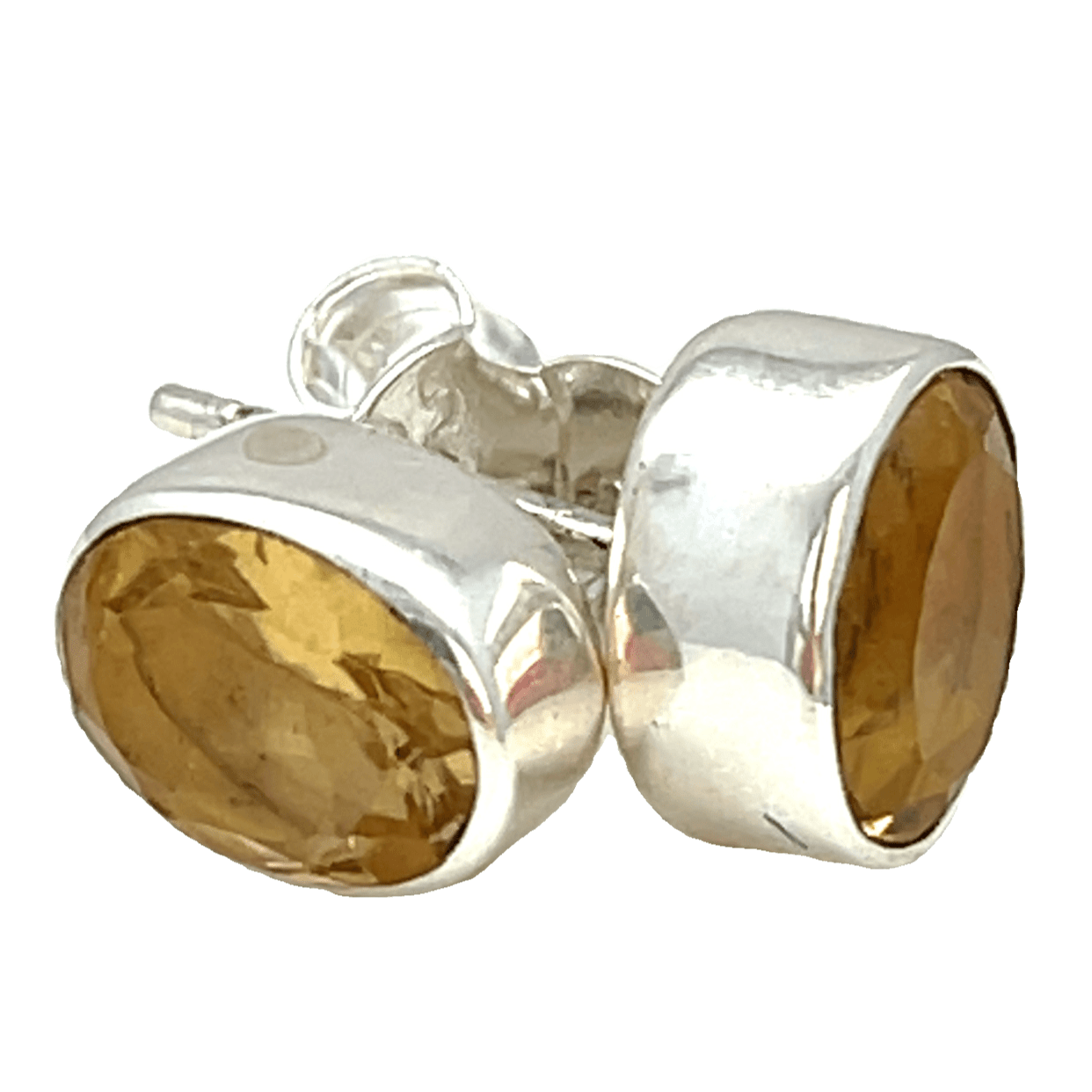 These stunning Citrine Bezel Studs are set in shiny Sterling Silver.