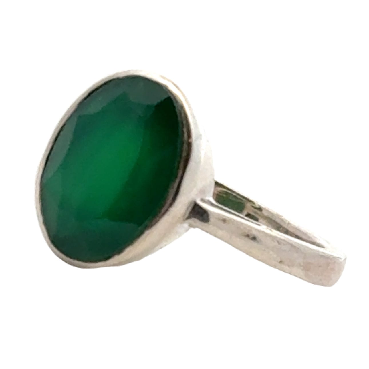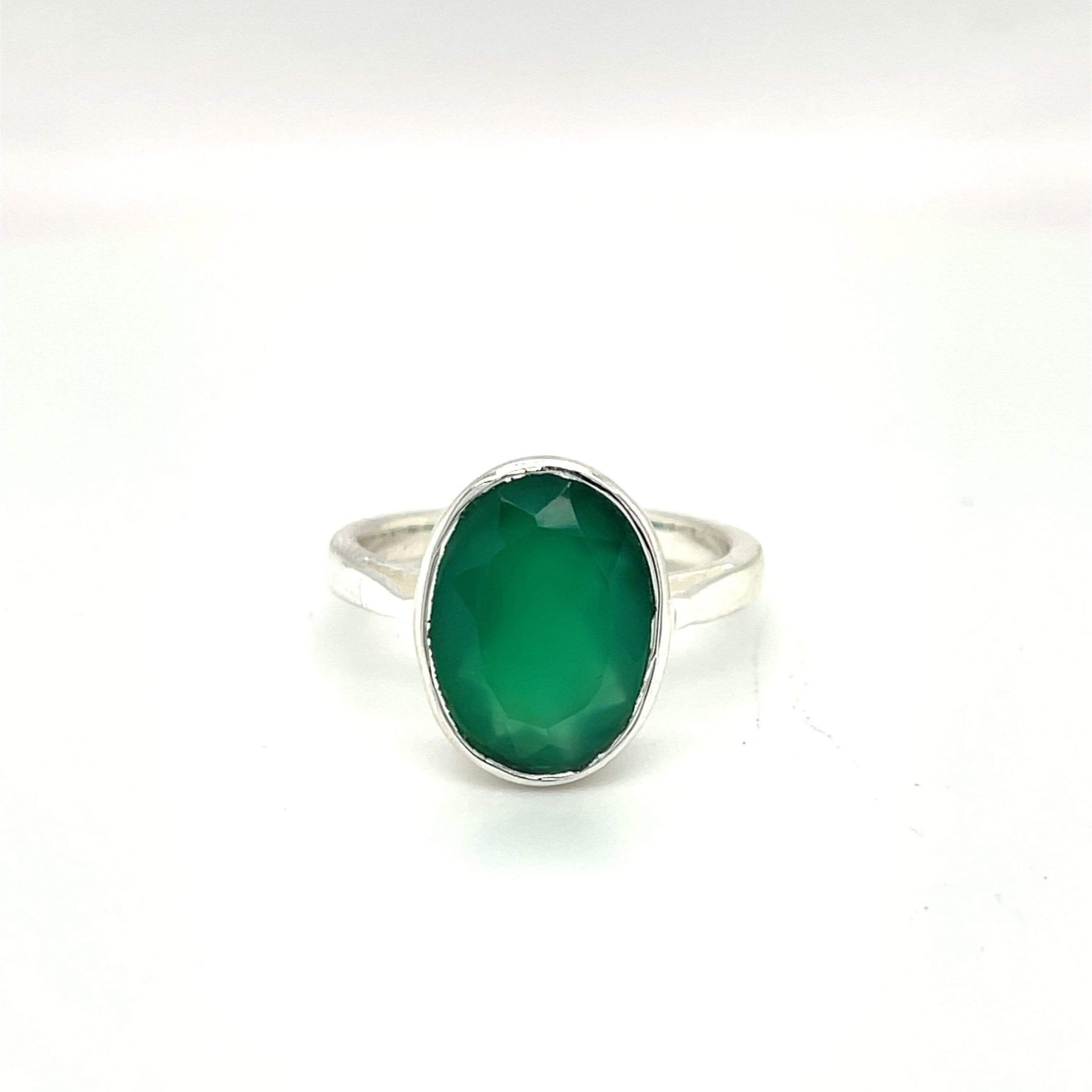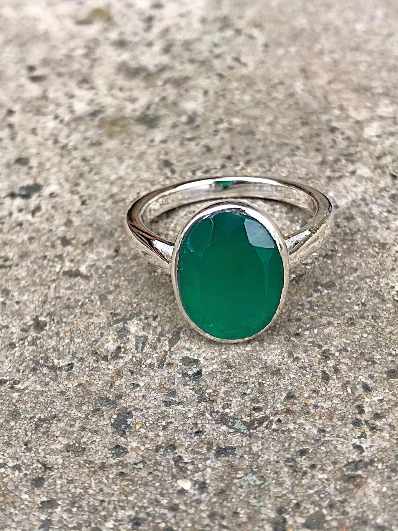 I recently received this ring as a gift, and I couldn't be more thrilled. The sleek design and green stone make it a standout piece. The quality is impeccable, and I appreciate the attention to detail in the design. It's become a daily wear for me. It arrived beautifully gift wrapped and with a hand written gift card.