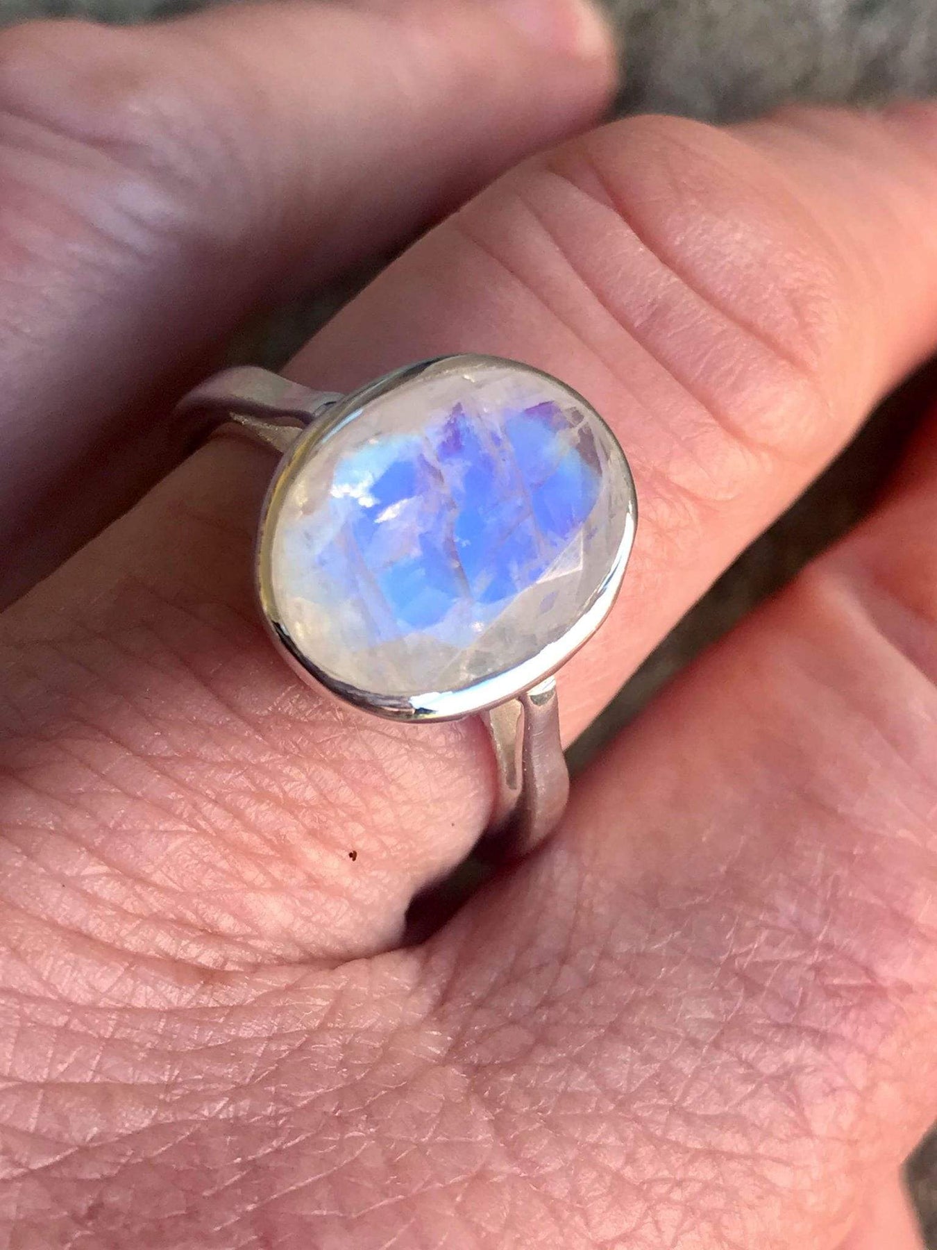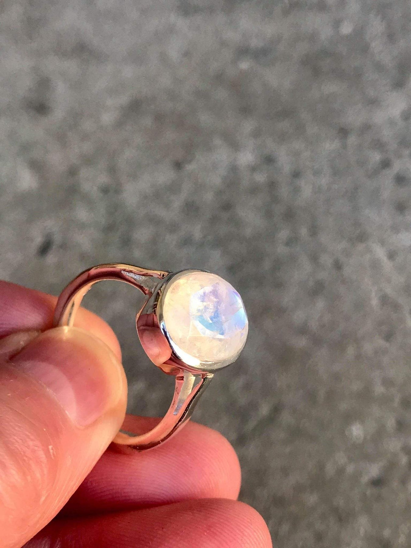 Pure enchantment on my finger. The moonstone has this glow that's so interesting. The setting is secure and comfortable, and the quality is outstanding. It's become my favourite piece of jewellery.