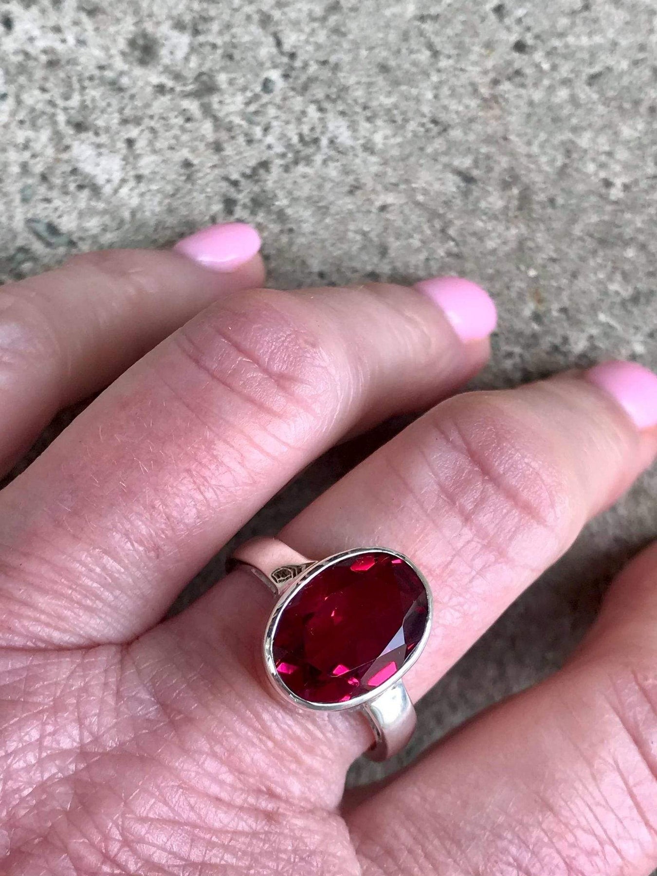 This silver ruby ring is perfect for those who appreciate the finer things in life. If you're drawn to the power and beauty of red – be it in red lipstick, red nails, or a breathtaking sunset – this ring is made for you. It's a symbol of passion, love, and loyalty, making it an ideal gift for yourself or someone special.