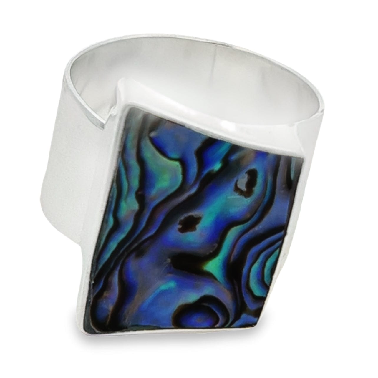 The large asymmetrical face of the ring ads to its distinctive and eye-catching design. With no two pieces of Paua Shell ever being identical, this ring is truly one-of-a-kind, offering an exclusive statement piece that is unique to the wearer.