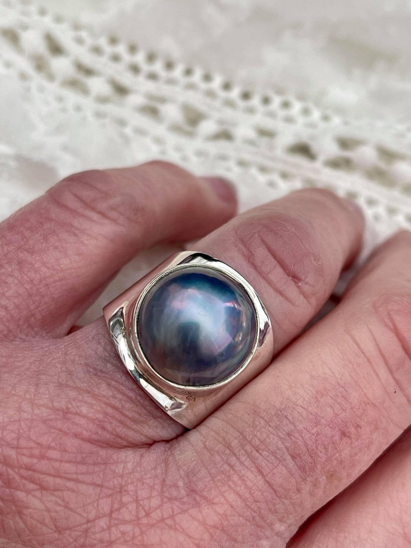 This is a beautiful ring - good amount of silver and the pearl supurb. It is a statement piece ❤️